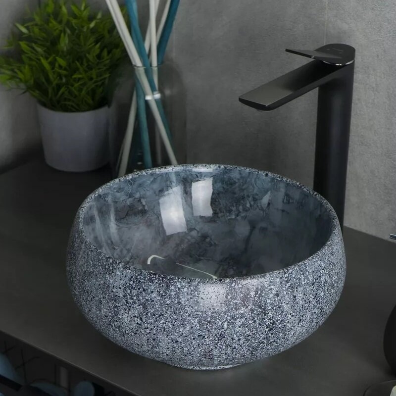 Накладная раковина 32x32х15.5см Gid Mnc481 под камень серая, с донным клапаном