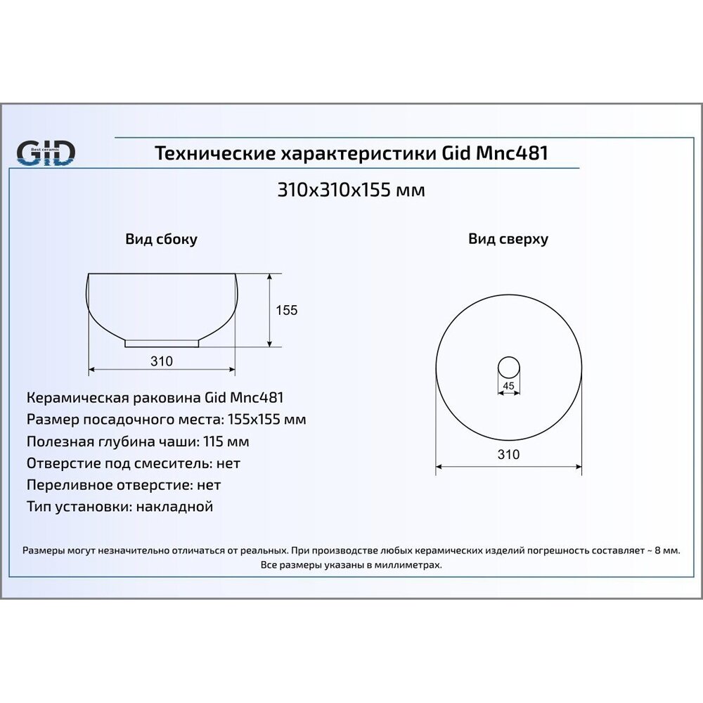 Накладная раковина для ванной Gid Mnc481 с донным клапаном