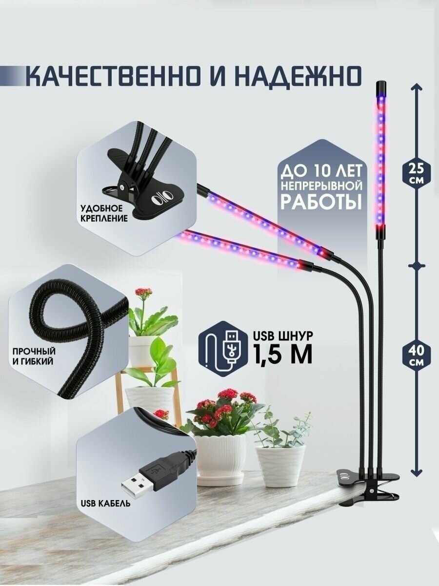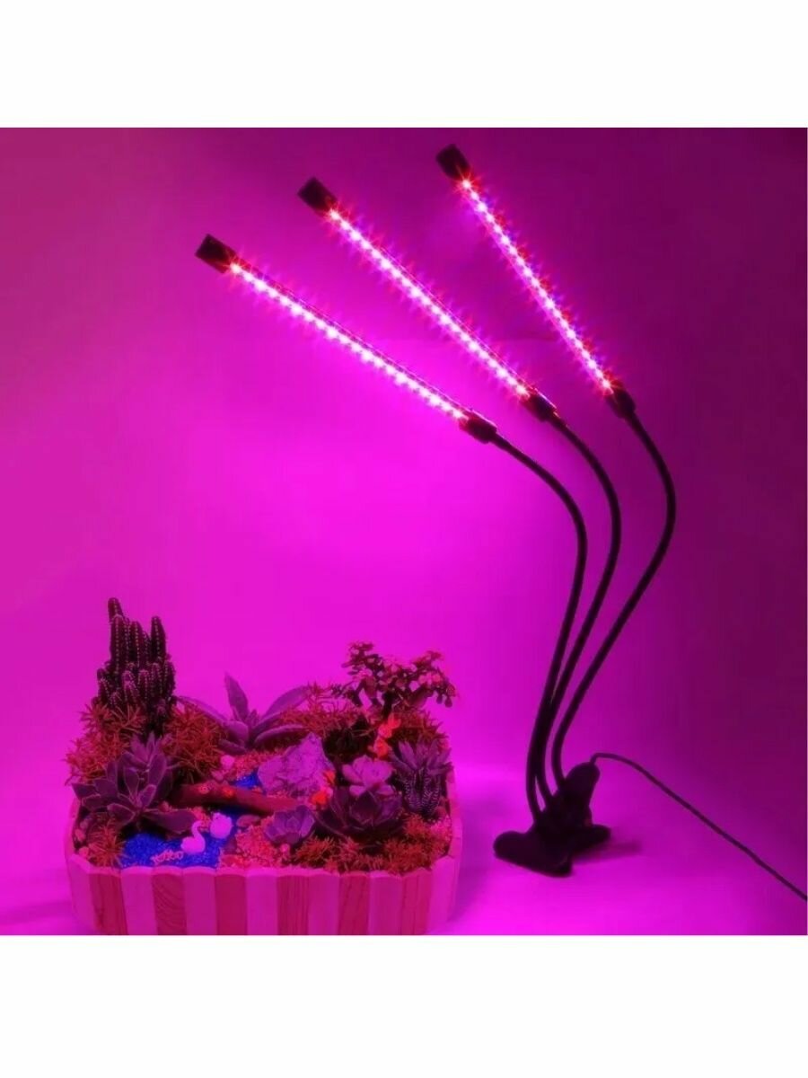 Фитолампа для растений / лампа светодиодная для растений на прищепке / фитосветильник с таймером LED свечение полный спектр /3 режима, пульт управления/ с 3-мя светильниками интересное: