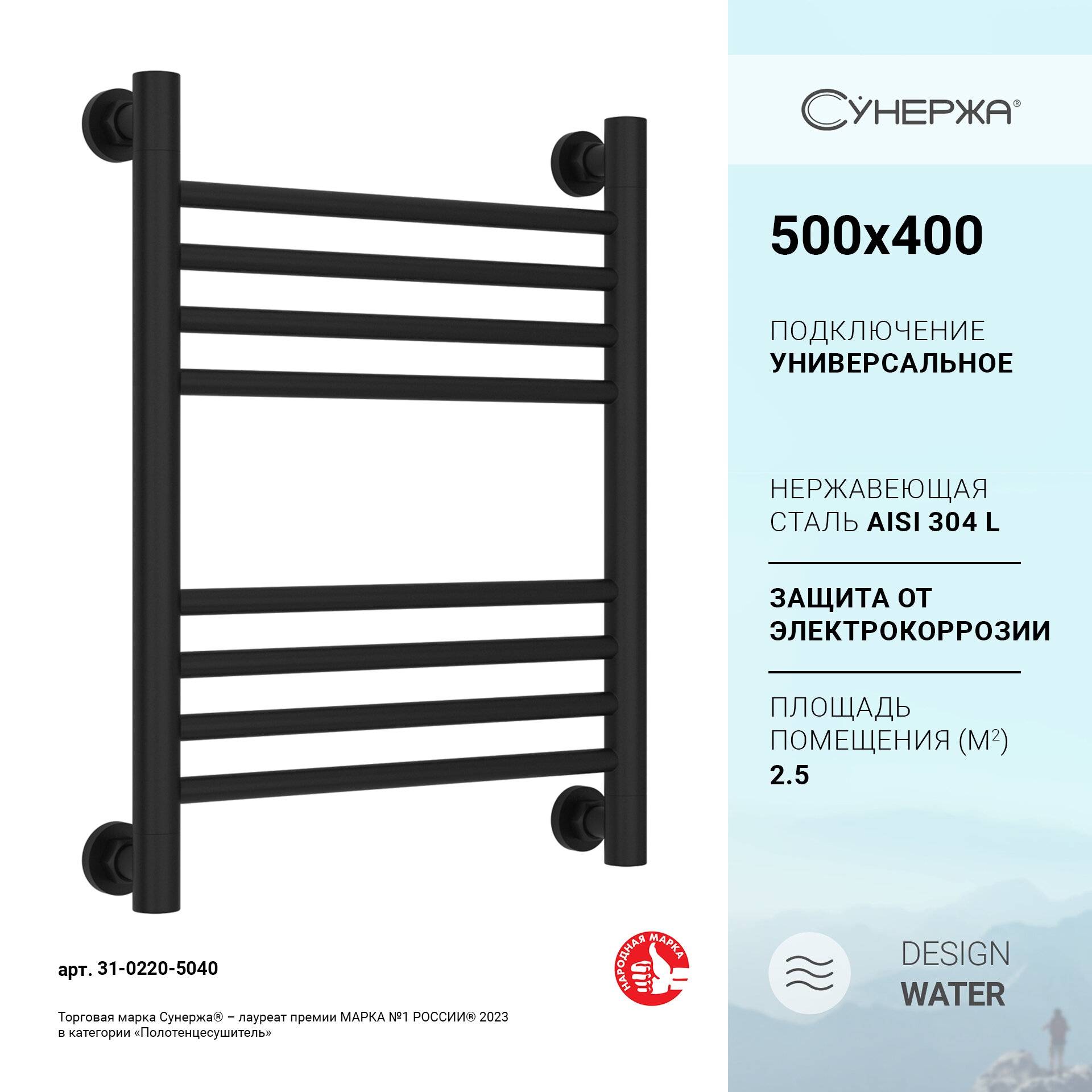 Водяной полотенцесушитель Сунержа Богема+ (прямая) 500x400 матовый черный арт. 31-0220-5040