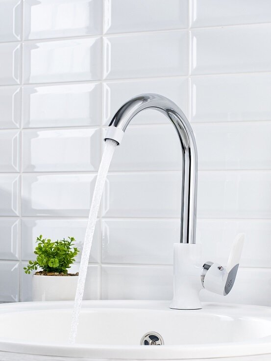 Смеситель для кухни, РМС SL123W-017F, белый, поворотный излив, с гибкой подводкой интересное: