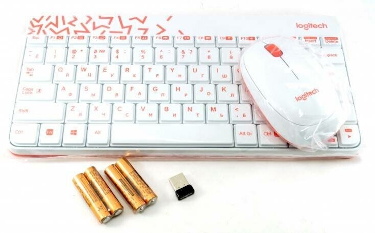 Комплект клавиатура + мышь Logitech MK240 Nano, white/red (Русская раскладка)