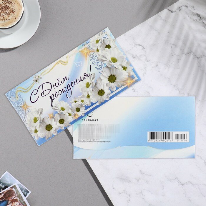 Конверт для денег "С Днём Рождения!" белые цветы, 8,7х17 см, 10 штук интересное: