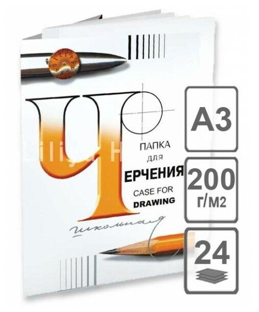 Папка для черчения А3, 24 листа Школьная , без рамки, блок 200 г/м²