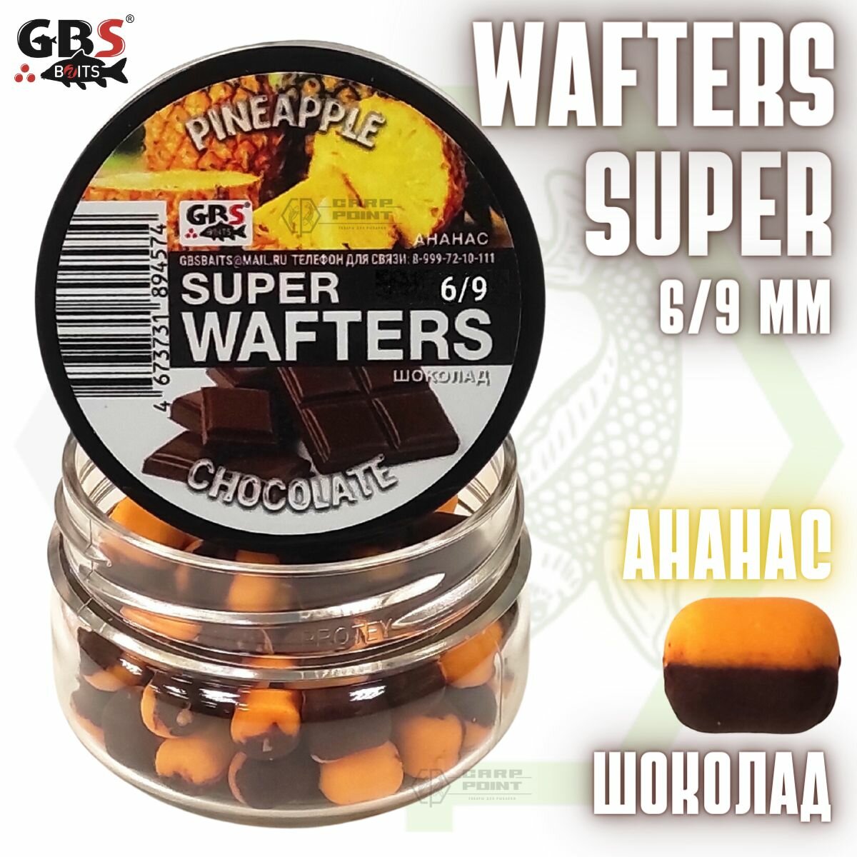 Вафтерсы GBS SUPER WAFTERS Pineapple - Chocolate 6/9мм / Бойлы нейтральной плавучести Ананас - Шоколад