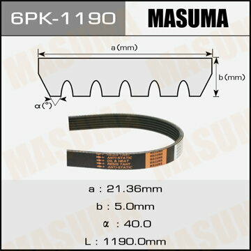 MASUMA 6PK-1190 Ремень ручейковый 6PK-1190 интересное: