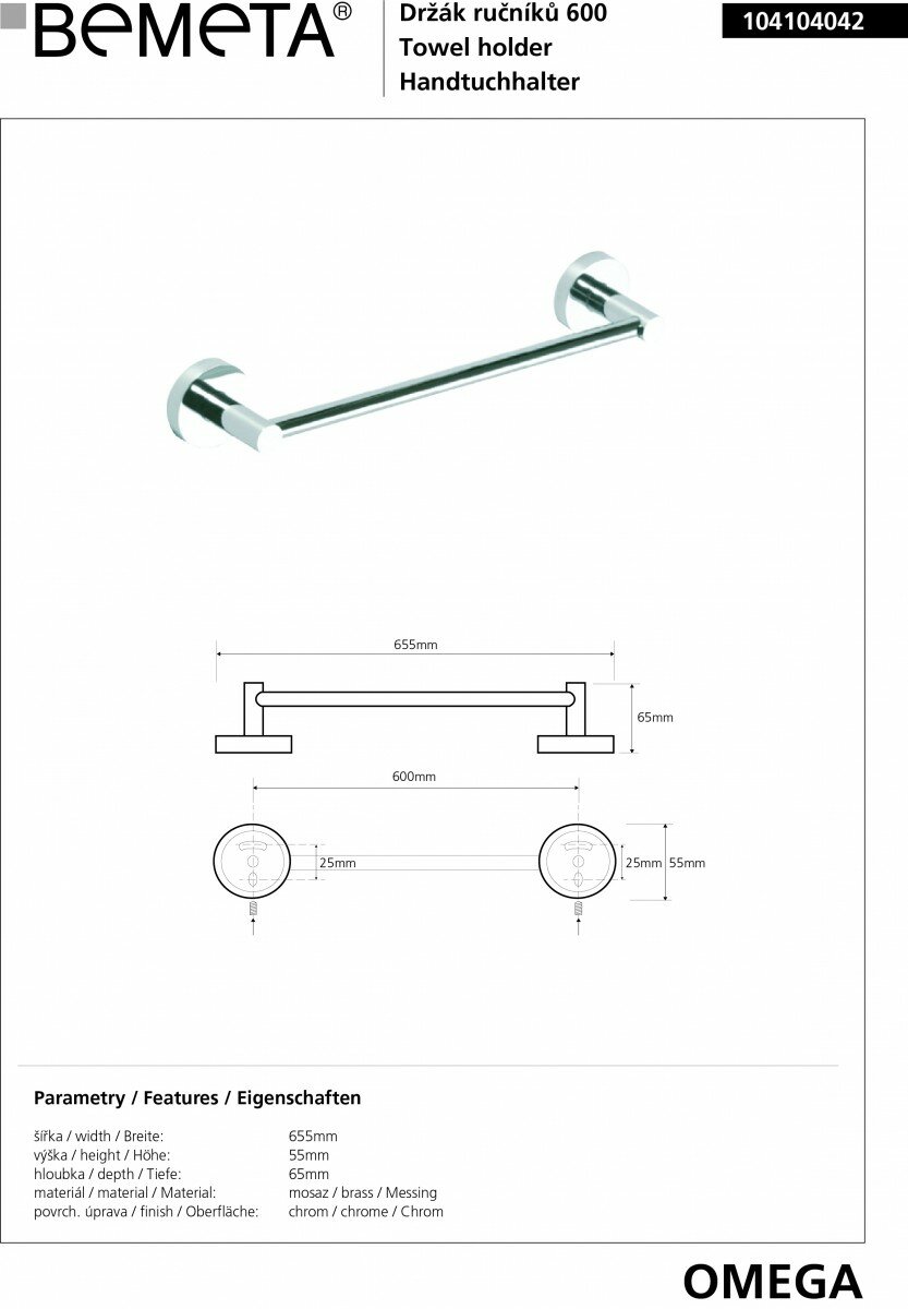 BEMETA Полотенцедержатель 65,5 см Bemeta Omega 104104042