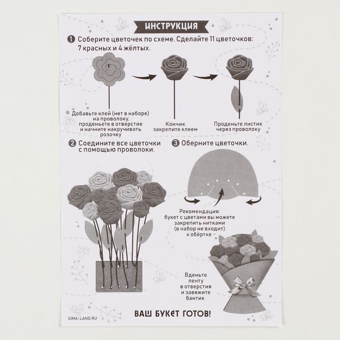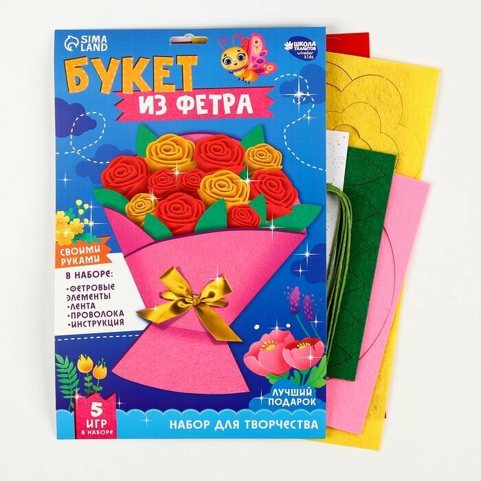 Купить Набор для детского творчества "Букет из фетра. Розы", комплект для рукоделия с готовыми деталями и инструкцией, заготовка для поделки, подарок на 8 марта своими руками