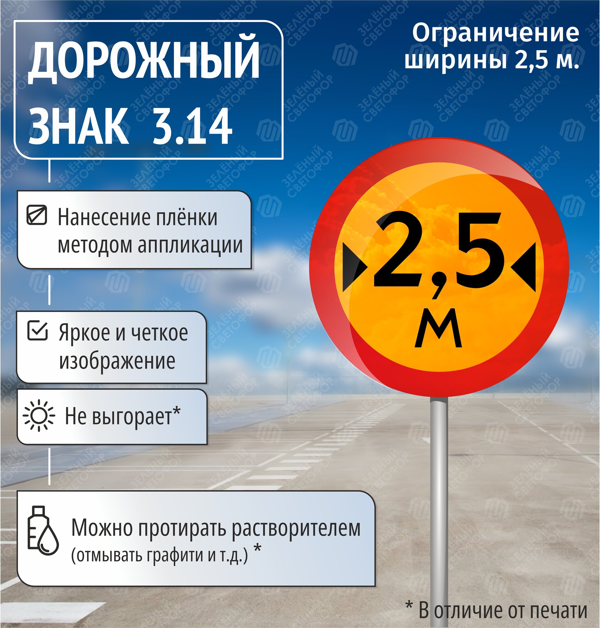 Ниже Вы можете прочитать отзывы на Временный дорожный знак 3.14 Ограничение ширины 2,5м, ознакомится с подробными характеристиками, посмотреть интересные обзоры и фотографии на Временный дорожный знак 3.14 Ограничение ширины 2,5м.