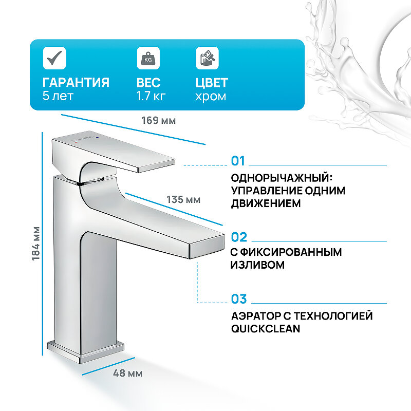 | Плюсы: | Отличный смеситель, как и все Hansgrohe. Серия идеально сочетается с квадратными раковинами |