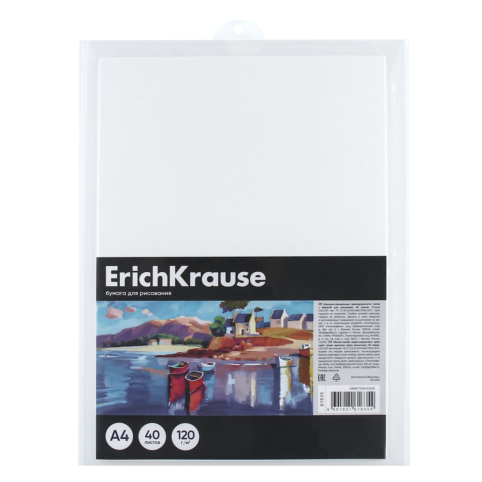 Купить Бумага для рисования А4, 40 листов, блок 120 г/м², ErichKrause "Art Spirit", 100% белизна, в пластиковой папке