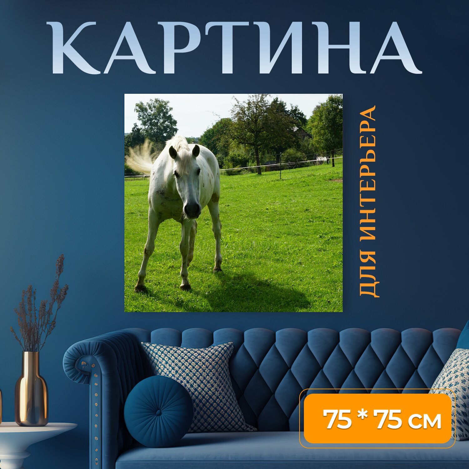 Картина на холсте "Лошадь, пастбище, летом" на подрамнике 75х75 см. для интерьера интересное: