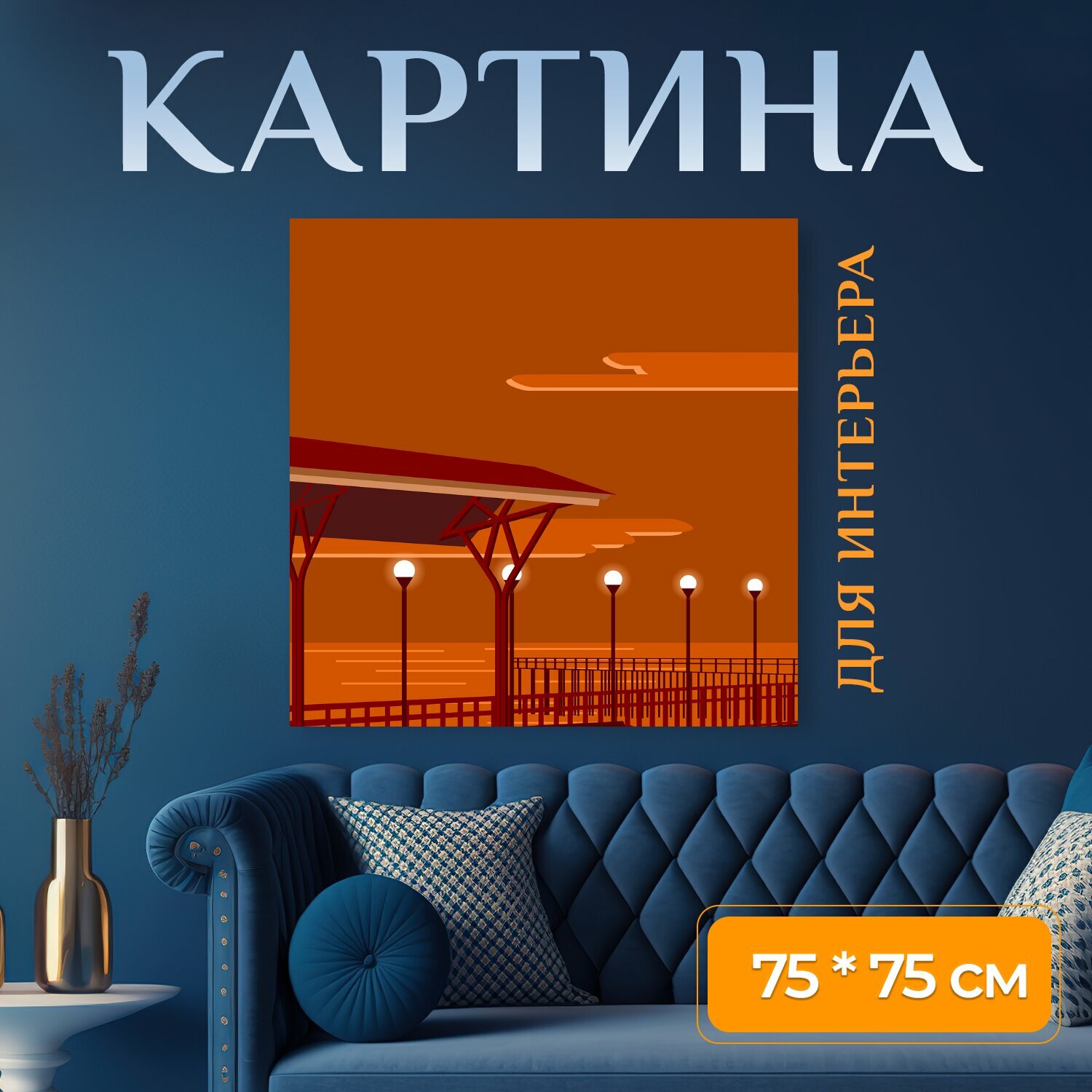 Картина на холсте "Станция, платформа, приморский" на подрамнике 75х75 см. для интерьера интересное: