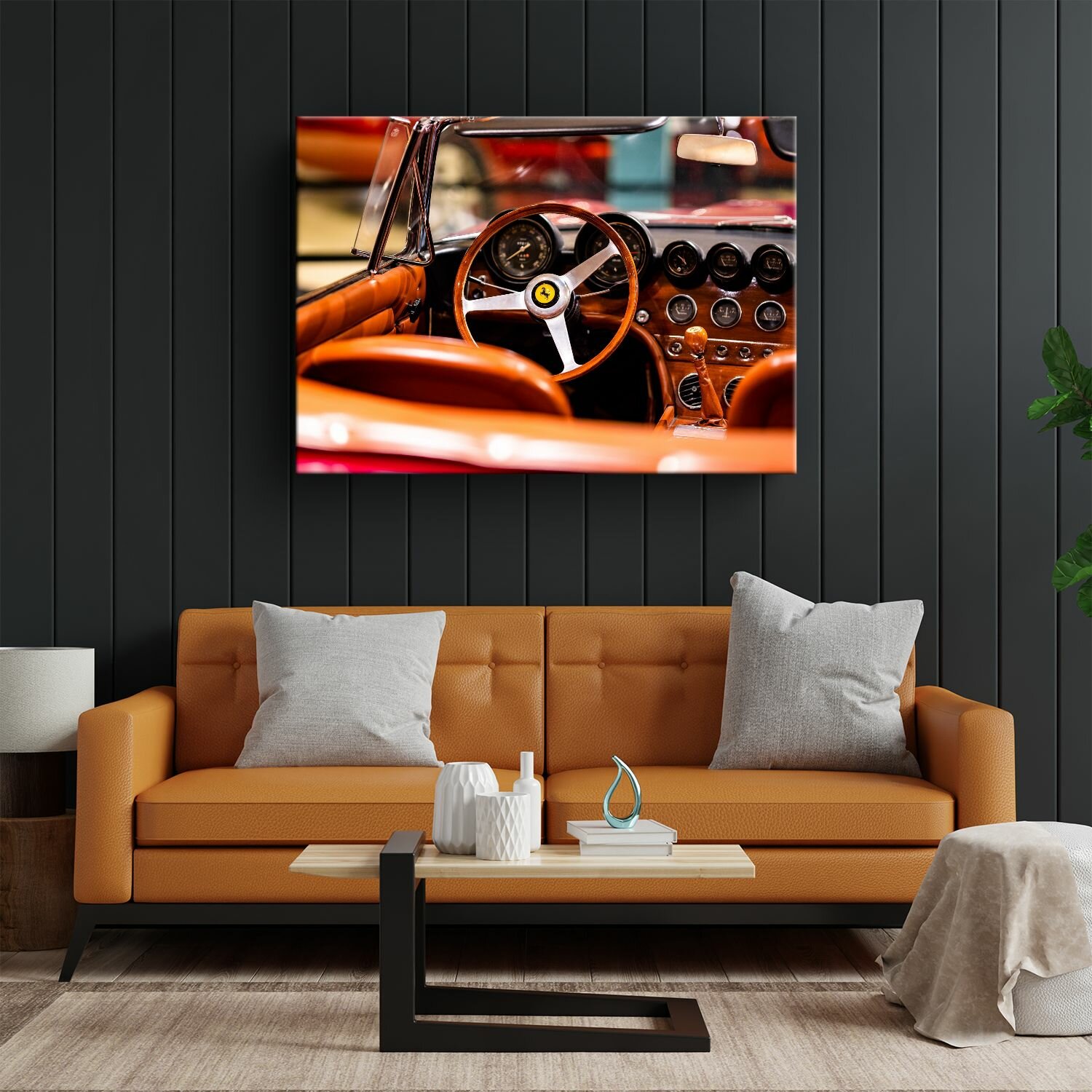 Картина на холсте (Машина с рулевым управлением и рулем) 50x70 см. Интерьерная, на стену. интересное: