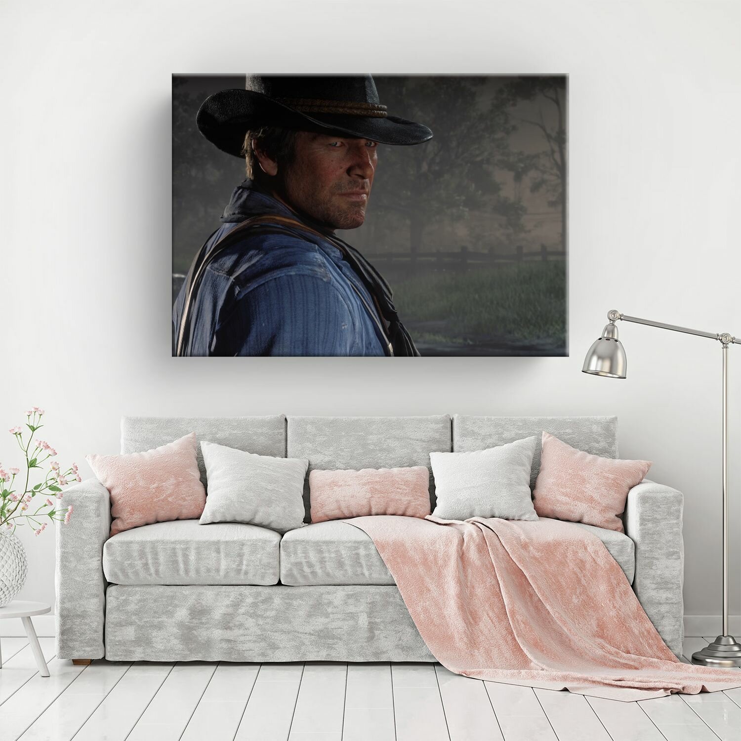 Купить Картина на холсте (Мужчина в ковбойской шляпе и синей рубашке) 30x40 см. Интерьерная, на стену.