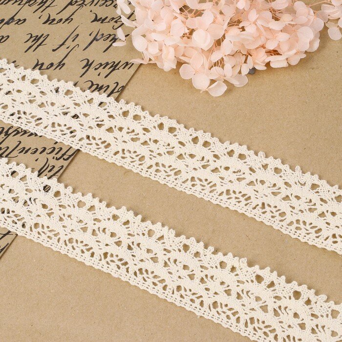 Кружево вязаное, 40 мм × 10 ± 1 м, цвет бежевый интересное: