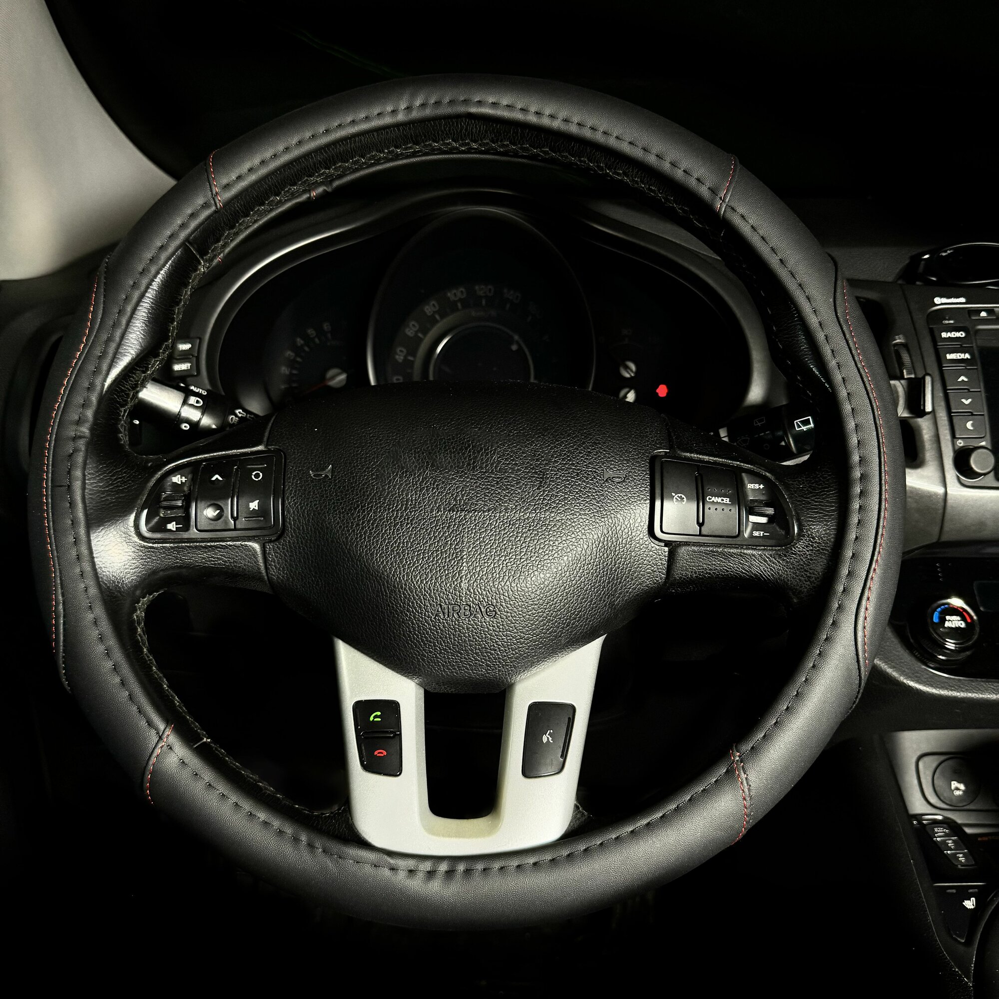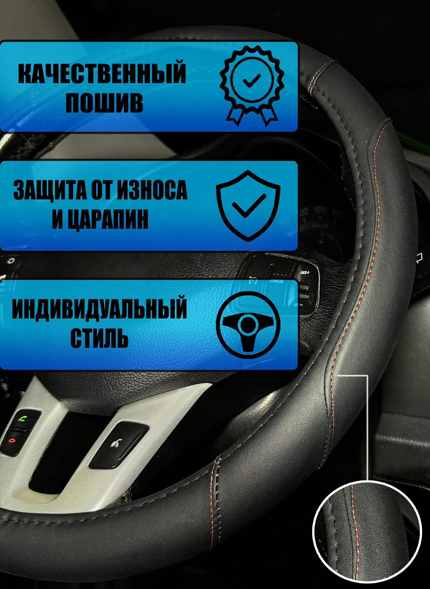 Оплетка, чехол (накидка) на руль Мерседес-Бенц Ц-класс (1997 - 2001) седан / Mercedes-Benz C-Class, экокожа (премиального качества), Черный с красной строчкой интересное: