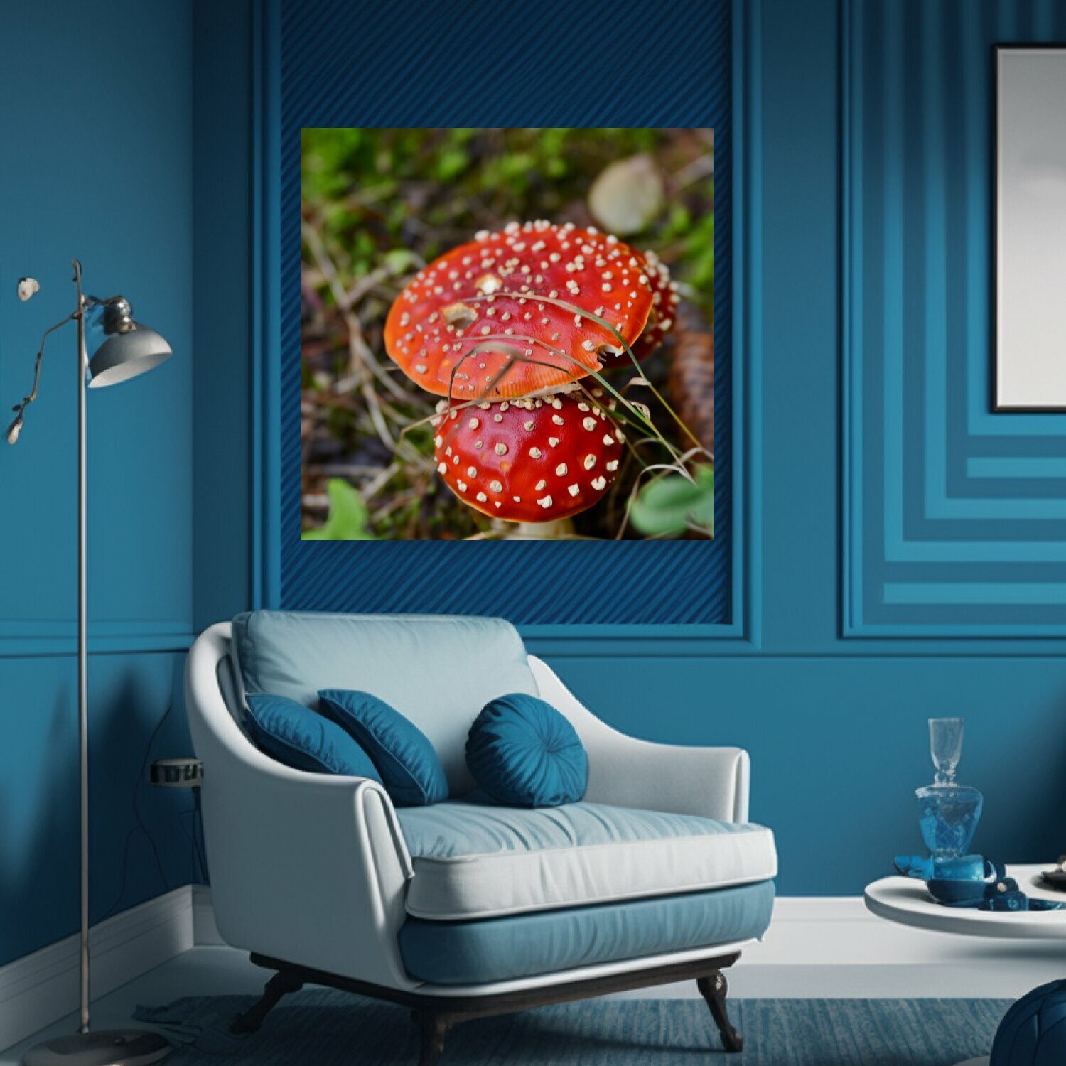 Картина на холсте "Грибы, красный с белыми точками, мухомор" на подрамнике 75х75 см. для интерьера интересное: