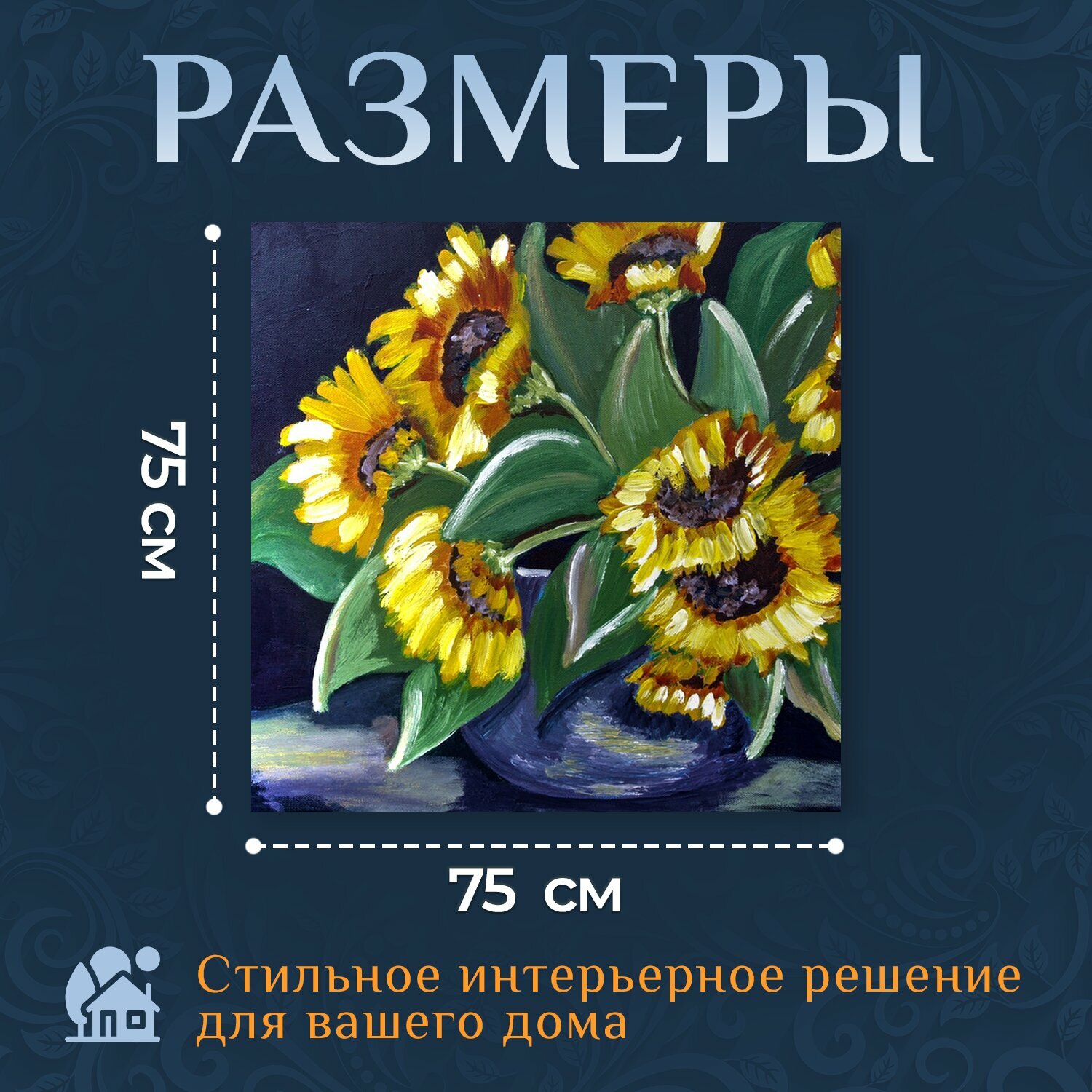 Купить Картина на холсте "Нарисованный подсолнух, акриловая краска, холст" на подрамнике 75х75 см. для интерьера