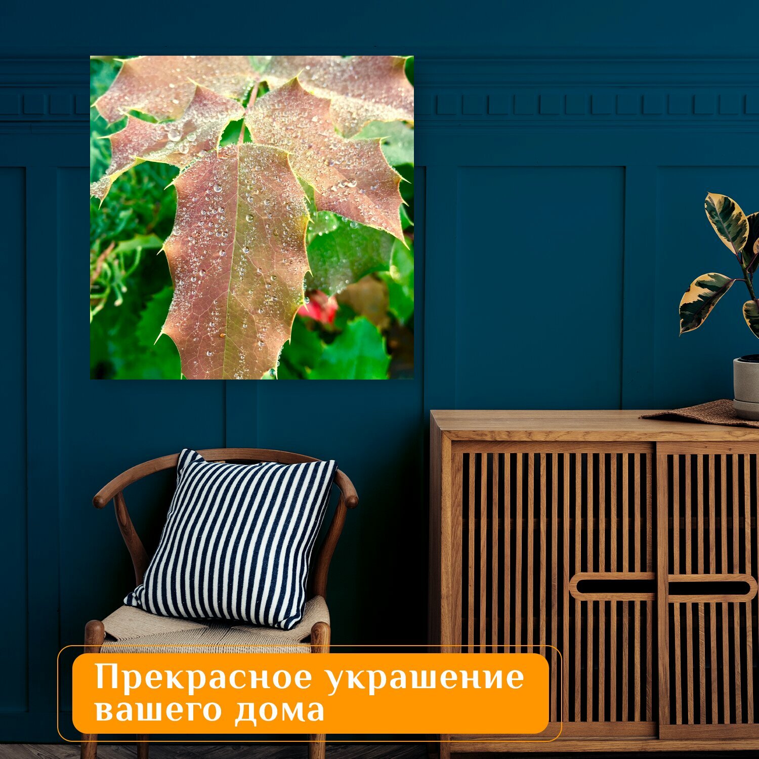 Купить Картина на холсте "Росы, лист, капля" на подрамнике 75х75 см. для интерьера