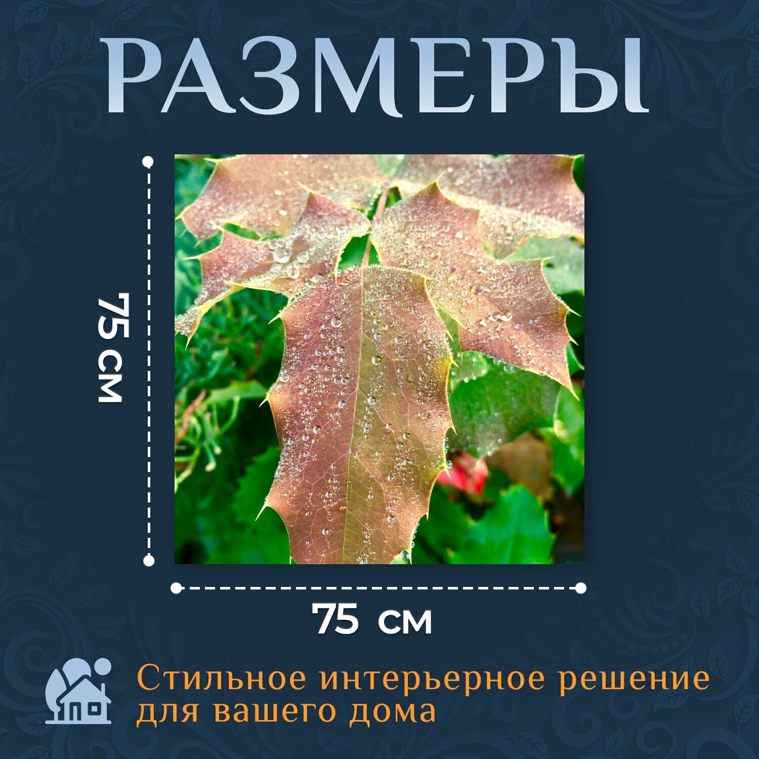 Картина на холсте "Росы, лист, капля" на подрамнике 75х75 см. для интерьера интересное: