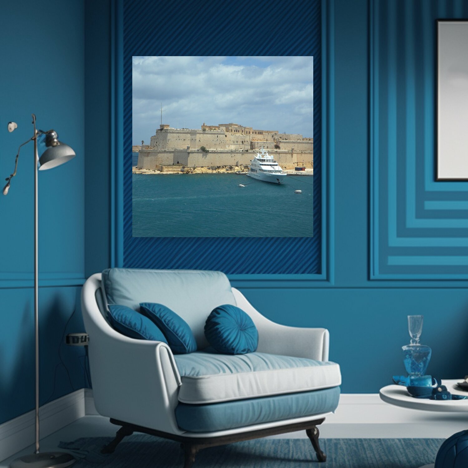 Картина на холсте "Порт, далеко, крепость" на подрамнике 75х75 см. для интерьера интересное: