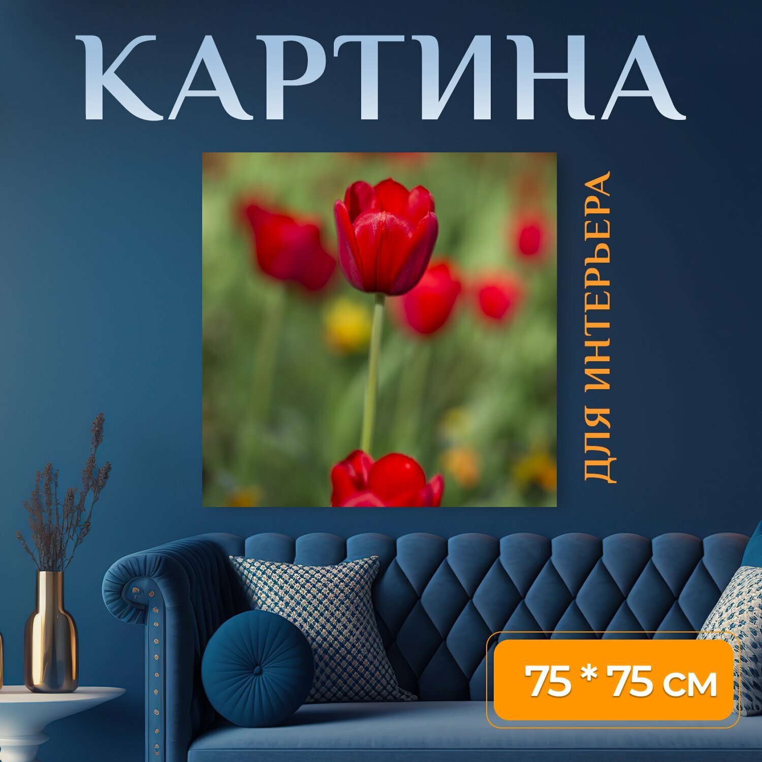 Картина на холсте "Тюльпан, красный, цветок" на подрамнике 75х75 см. для интерьера интересное: