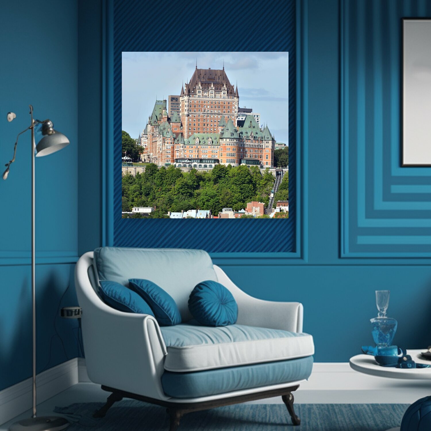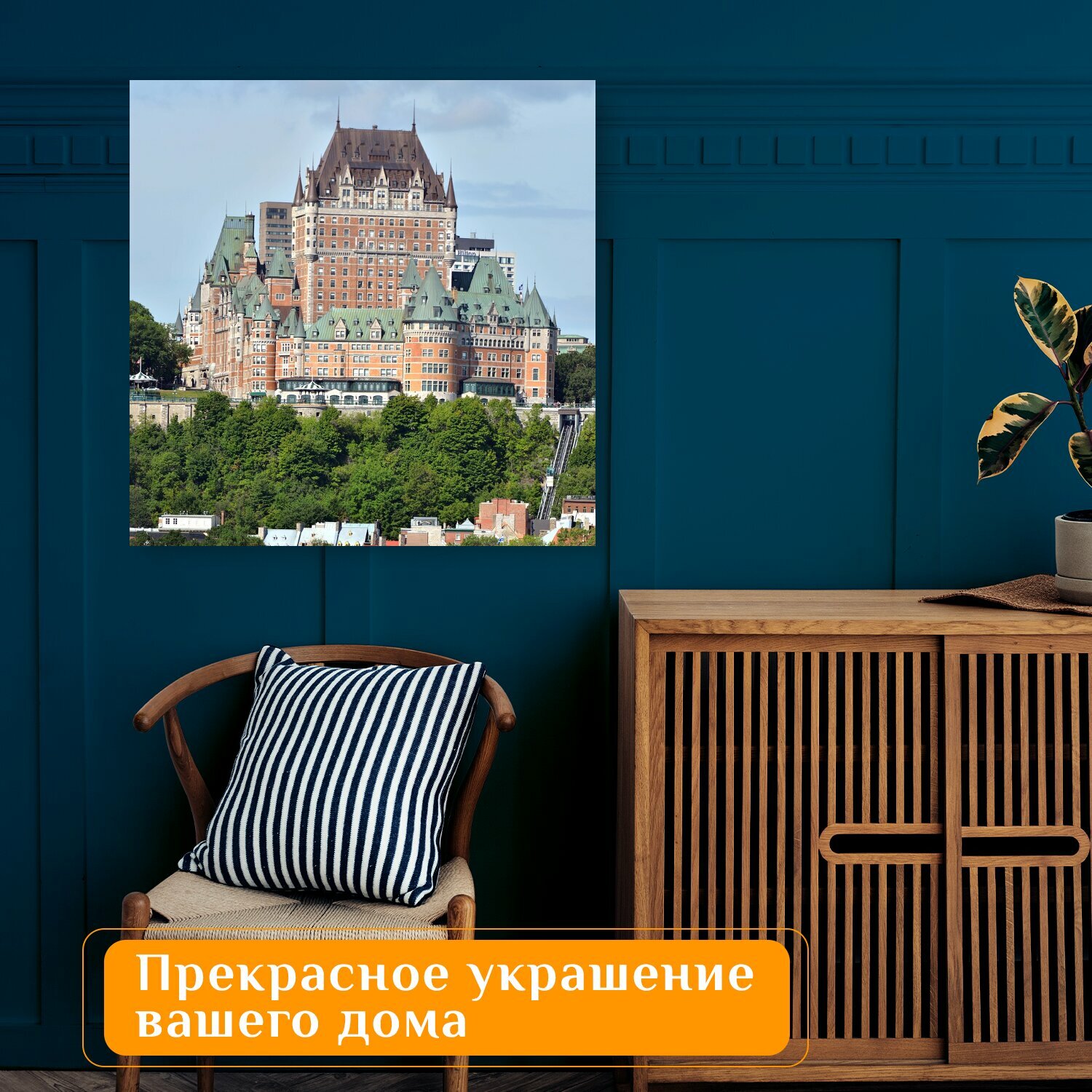 Картина на холсте "Квебек, замок, лодка" на подрамнике 75х75 см. для интерьера интересное: