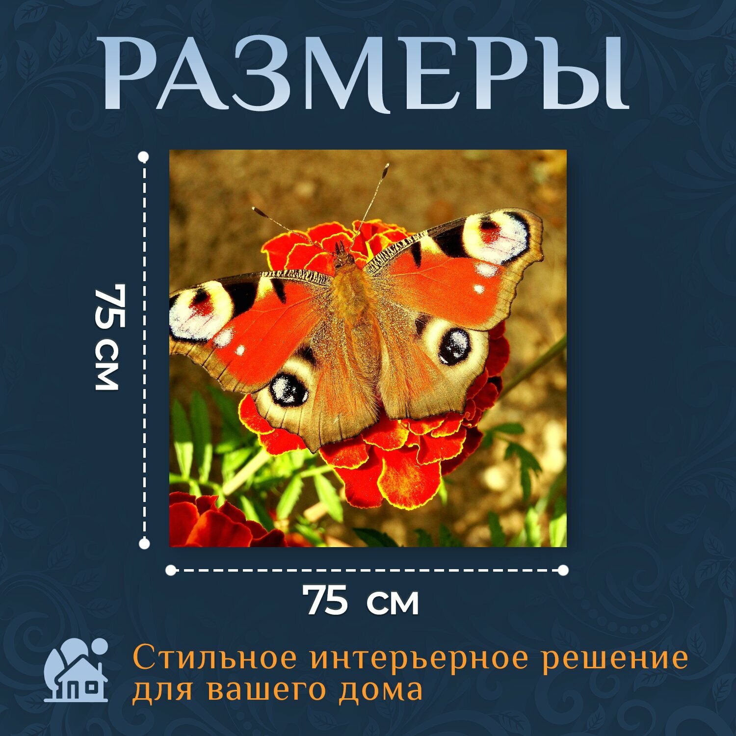 Картина на холсте "Природа, бабочки дневные, насекомое" на подрамнике 75х75 см. для интерьера интересное: