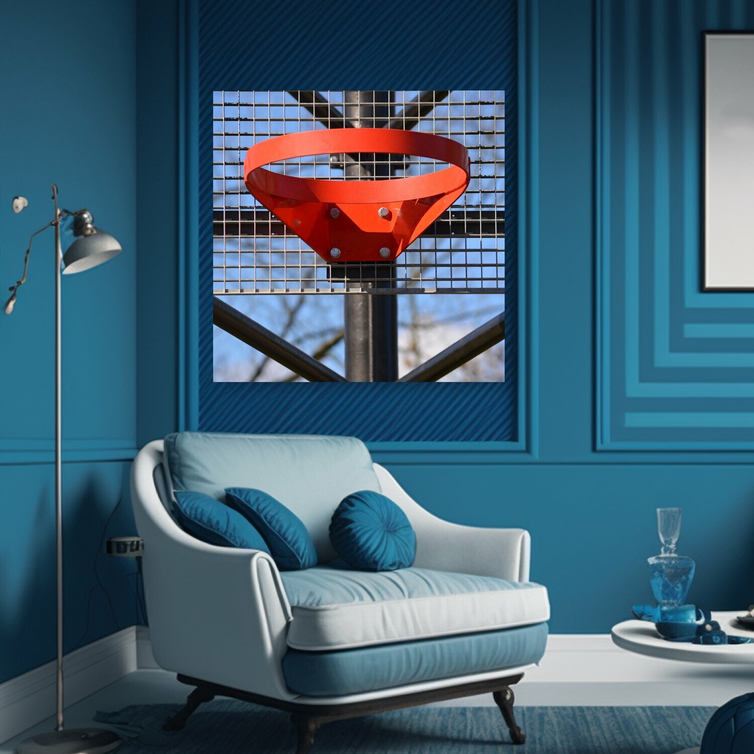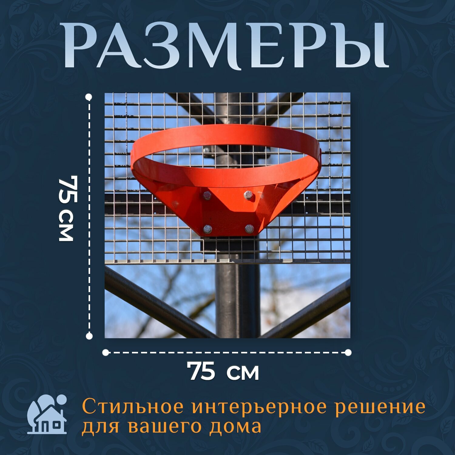 Картина на холсте "Баскетбольное кольцо, спорт, красный" на подрамнике 75х75 см. для интерьера интересное: