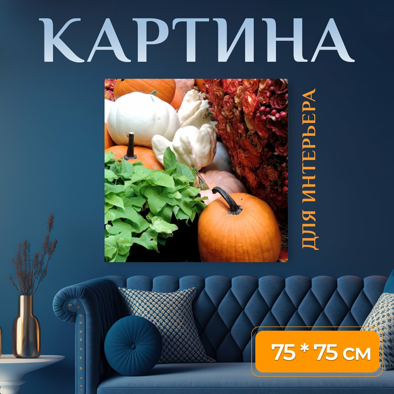 Картина на холсте "Тыквенные патч, осенний урожай, осень" на подрамнике 75х75 см. для интерьера интересное: