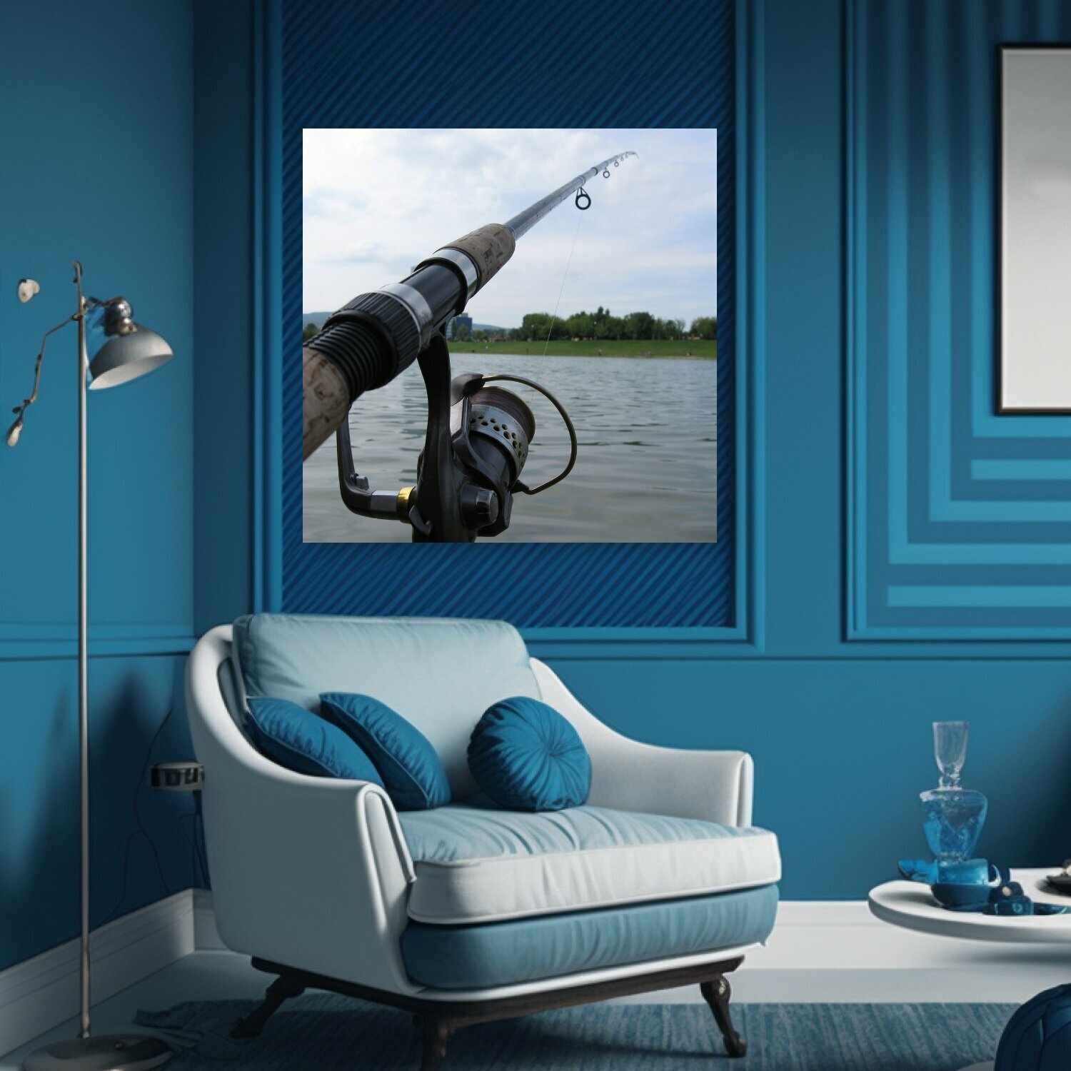 Картина на холсте "Ловит рыбу, удочка, вода" на подрамнике 75х75 см. для интерьера интересное: