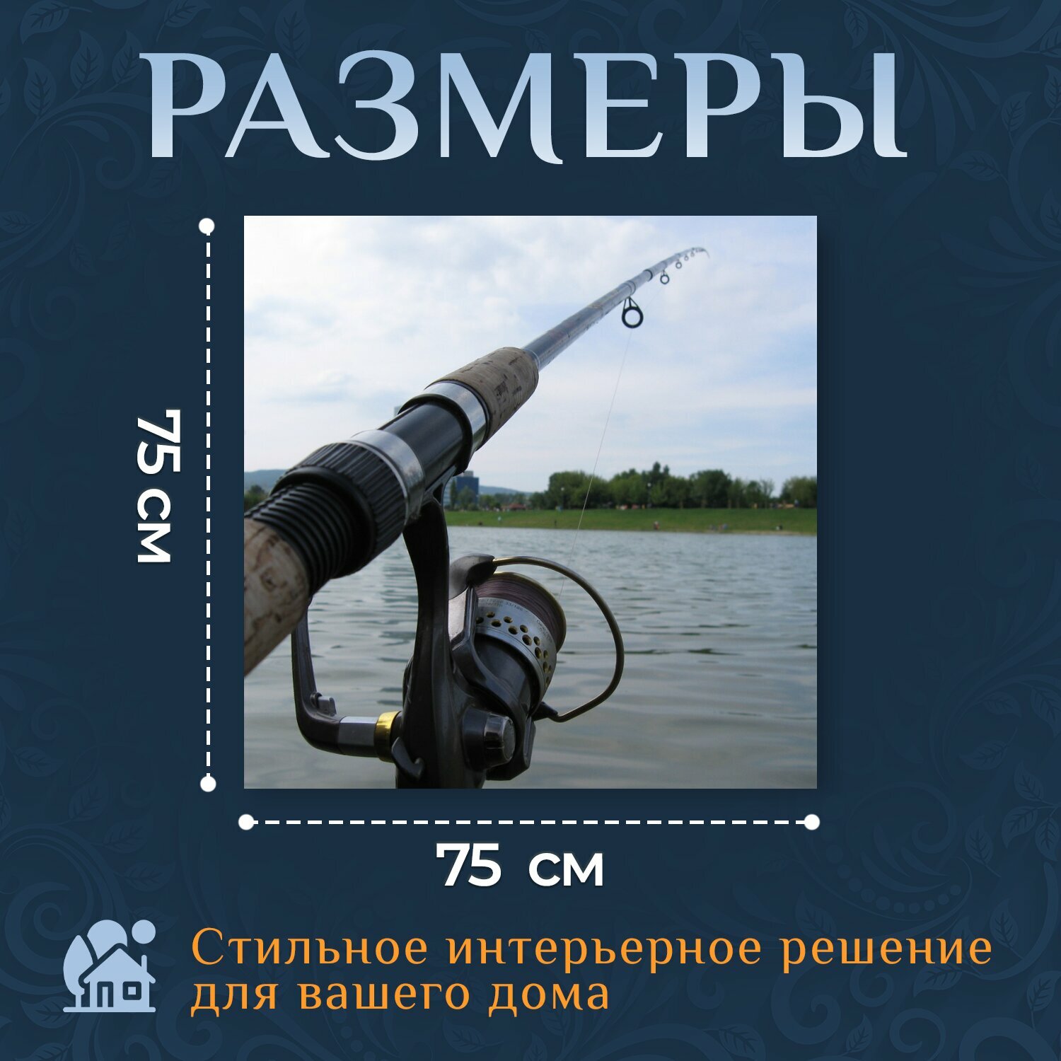 Купить Картина на холсте "Ловит рыбу, удочка, вода" на подрамнике 75х75 см. для интерьера