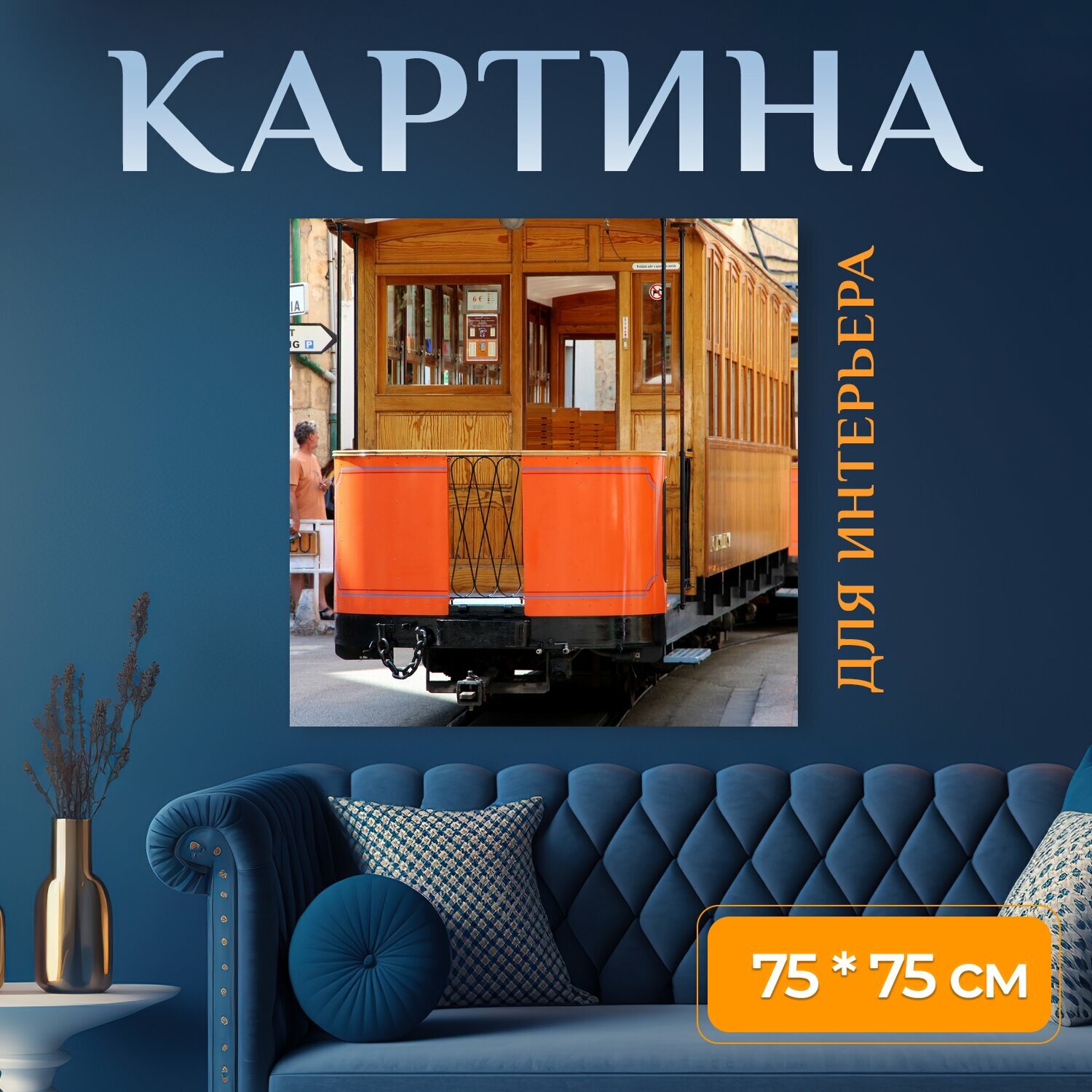Купить Картина на холсте "Трамвай, исторический поезд, железная дорога" на подрамнике 75х75 см. для интерьера