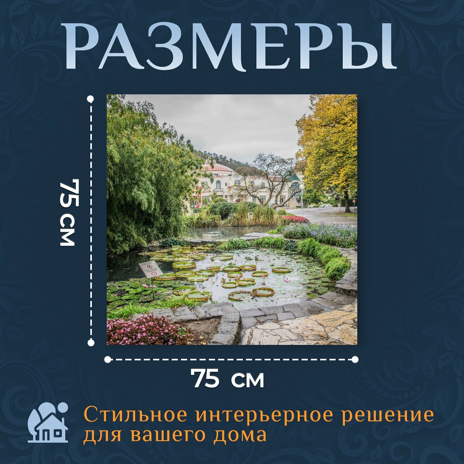 Картина на холсте "Виктории, королевская, водяные лилии" на подрамнике 75х75 см. для интерьера интересное:
