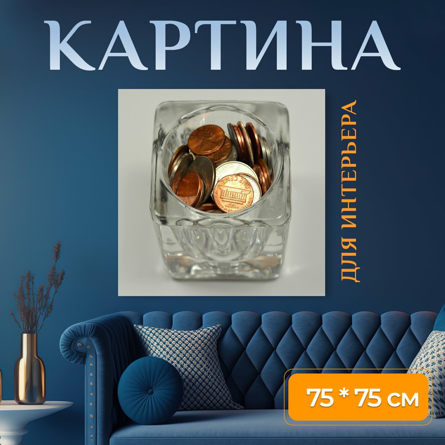 Картина на холсте "Деньги, изменять, пенни" на подрамнике 75х75 см. для интерьера интересное: