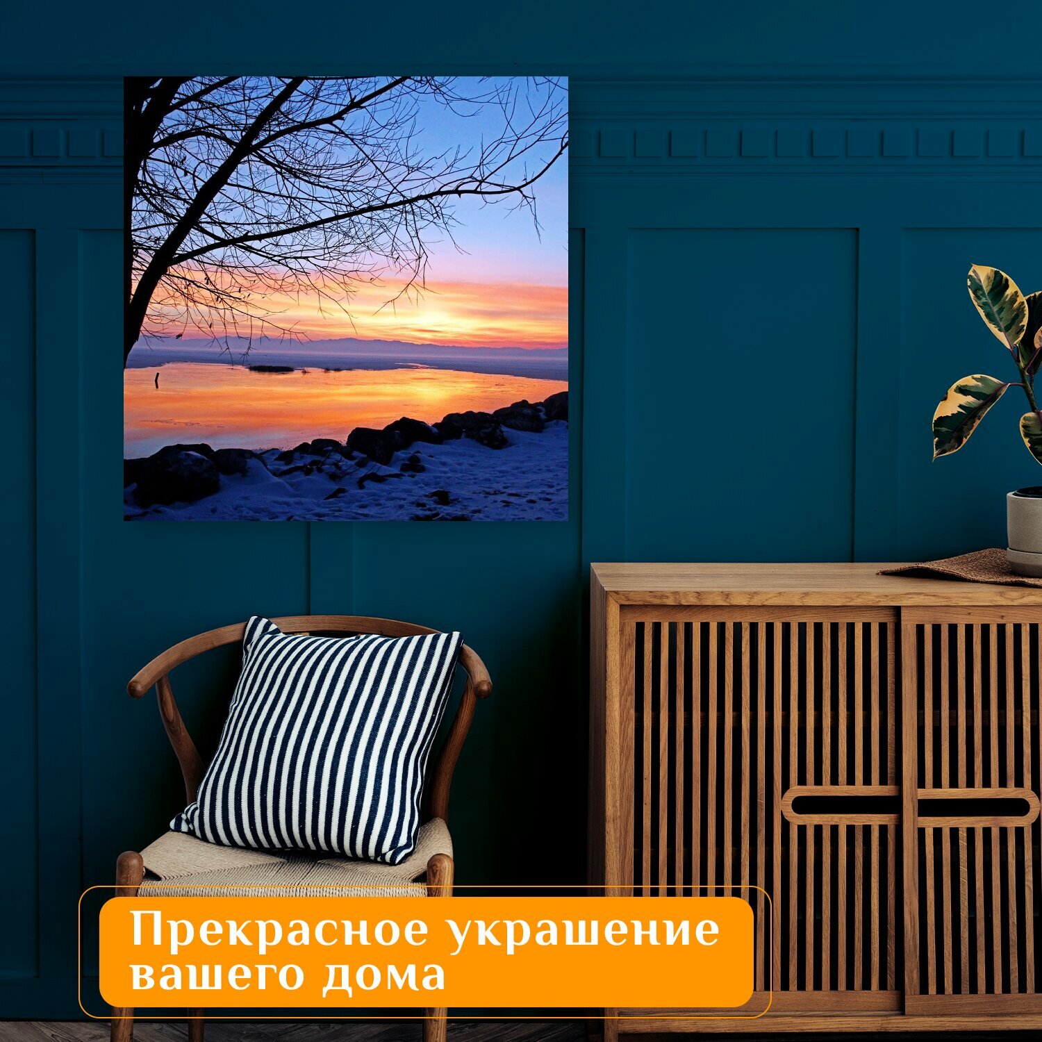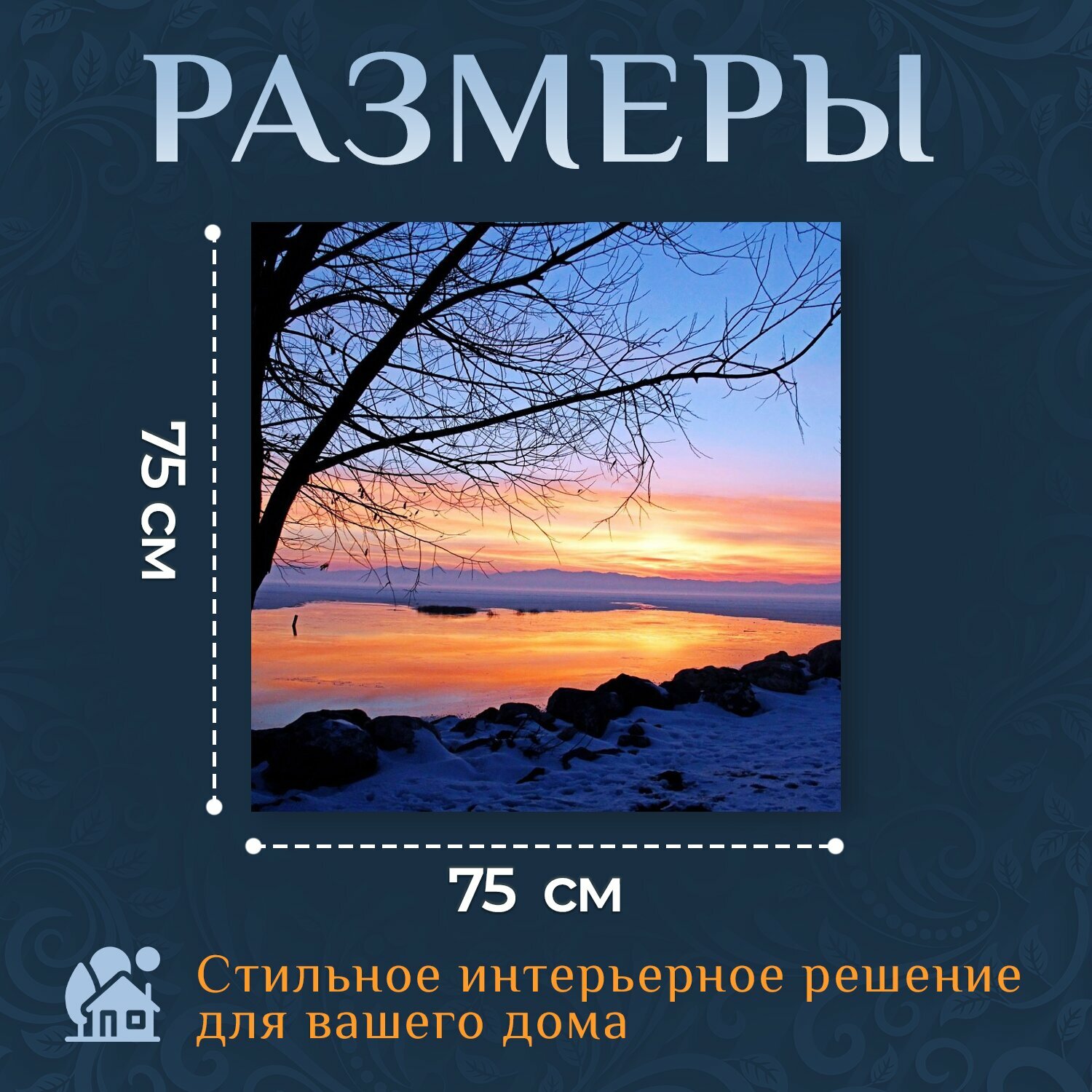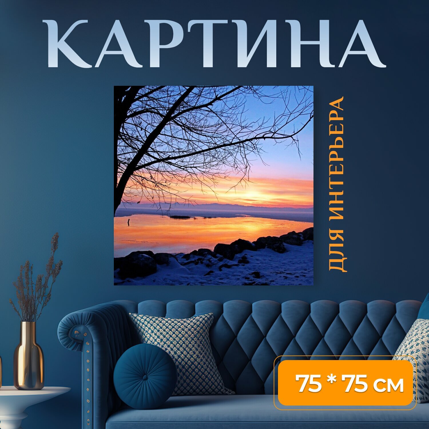 Купить Картина на холсте "Заход солнца, озеро, вода" на подрамнике 75х75 см. для интерьера