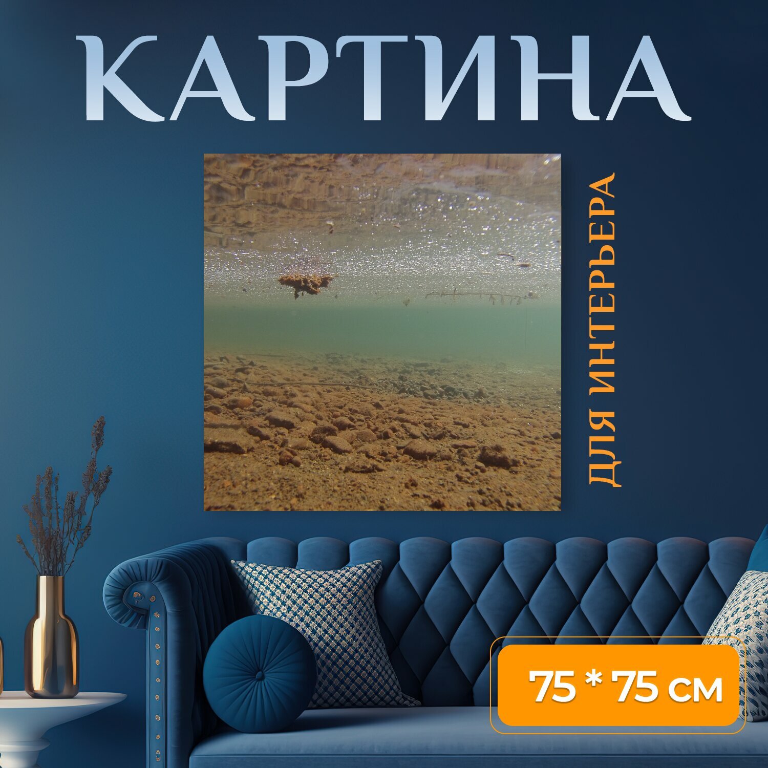 Картина на холсте "Подводный, вода, озеро" на подрамнике 75х75 см. для интерьера интересное: