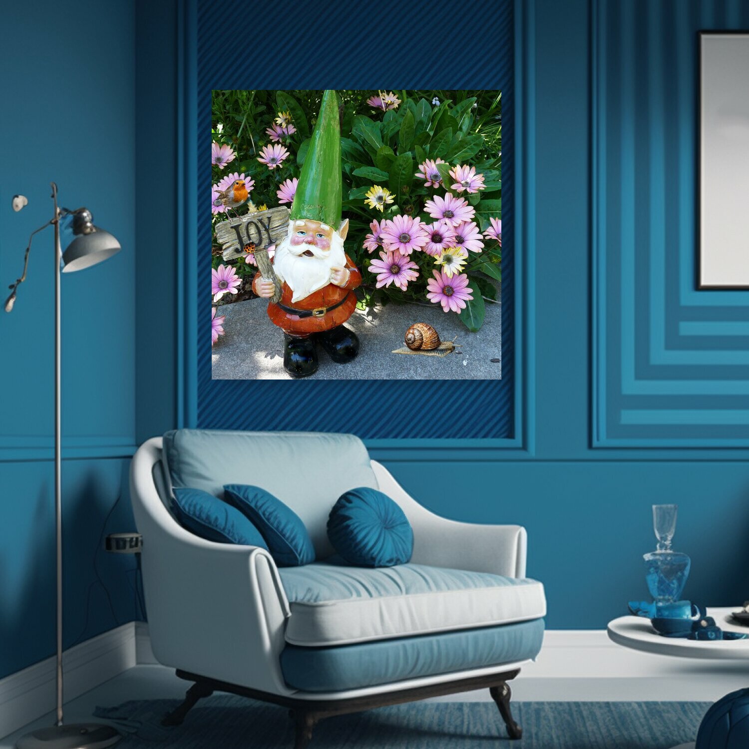 Купить Картина на холсте "Гном, статуя, сад" на подрамнике 75х75 см. для интерьера