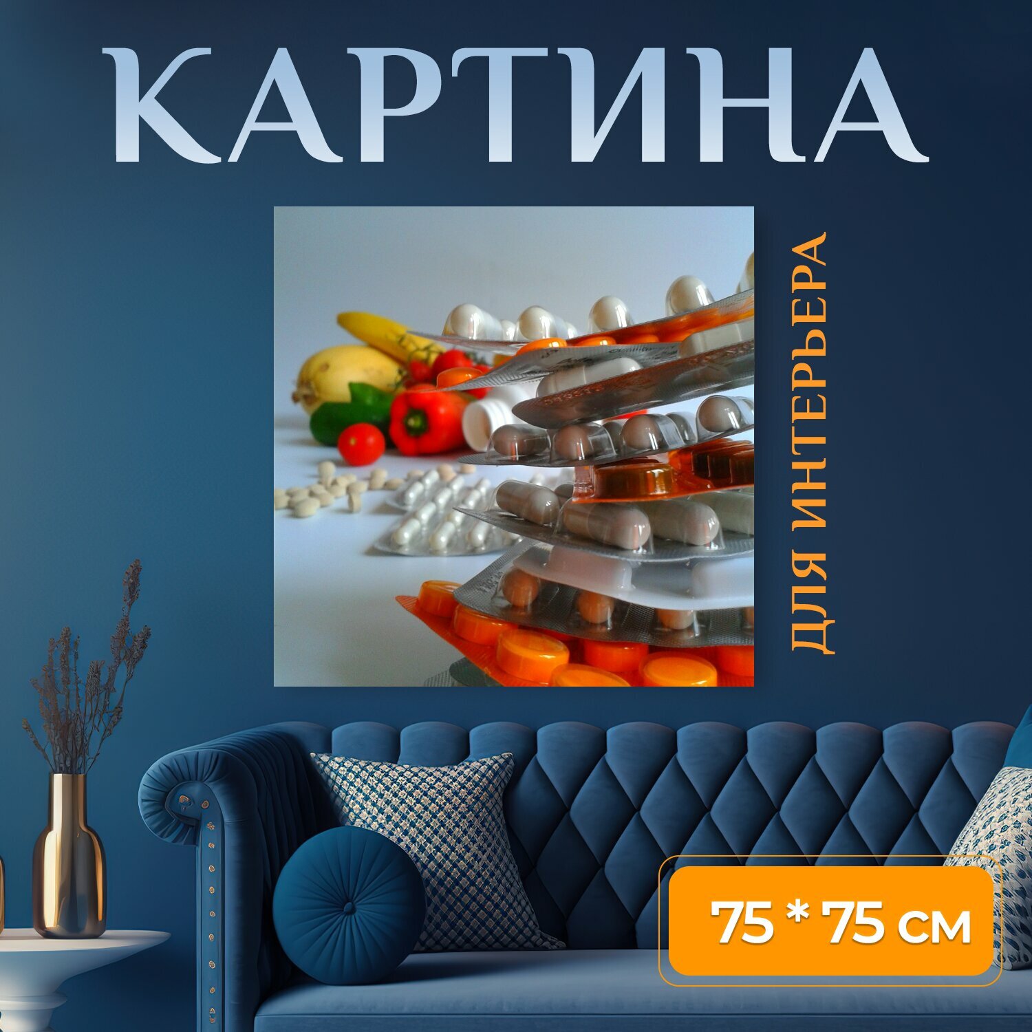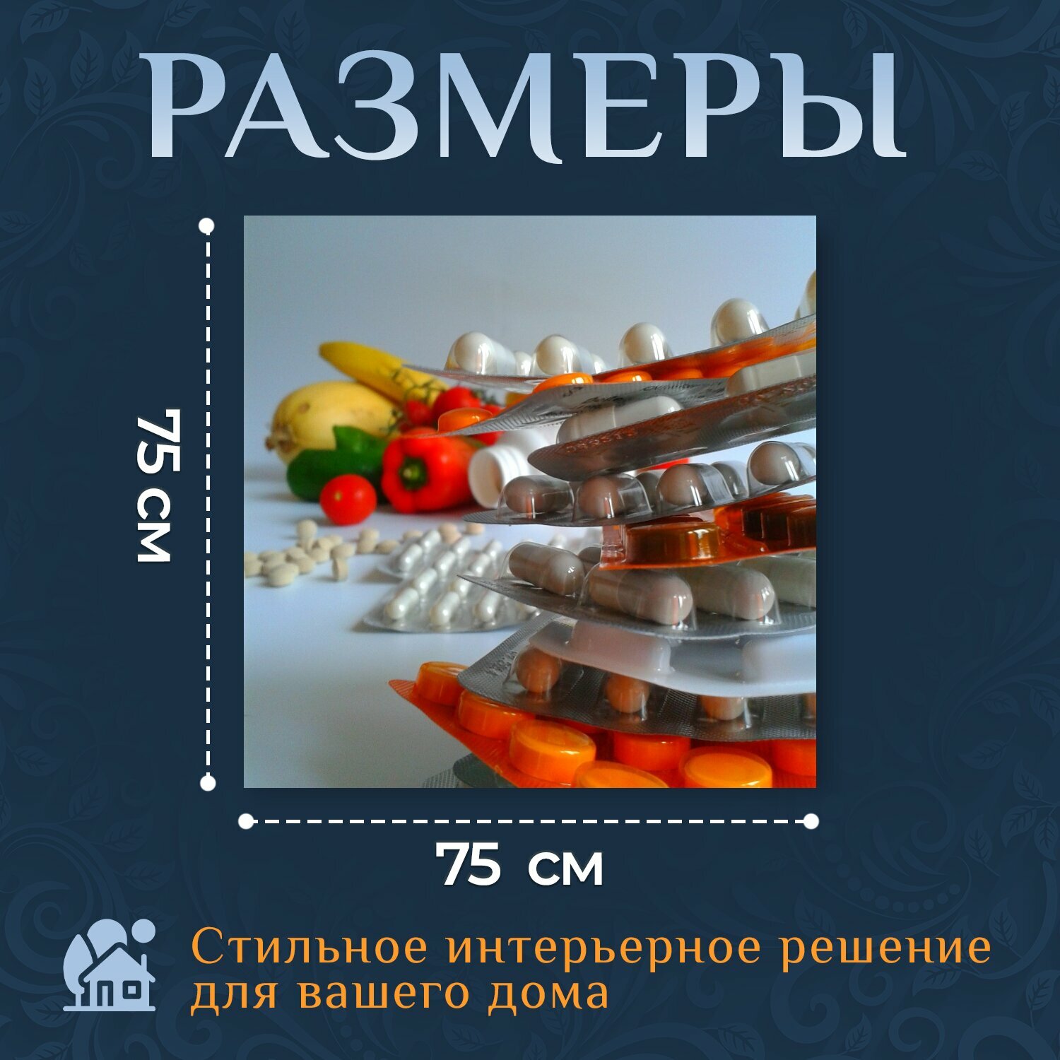 Картина на холсте "Витамины, таблетки, лекарства" на подрамнике 75х75 см. для интерьера интересное: