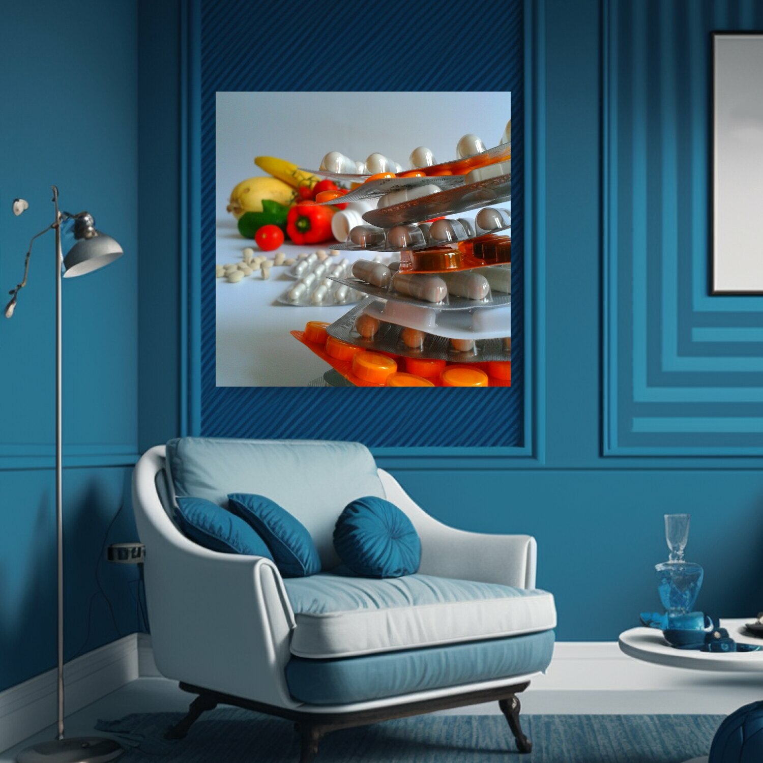 Купить Картина на холсте "Витамины, таблетки, лекарства" на подрамнике 75х75 см. для интерьера