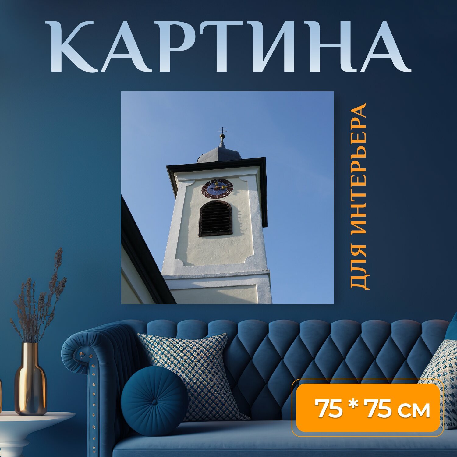 Купить Картина на холсте "Церковь, церковная башня, башенные часы" на подрамнике 75х75 см. для интерьера