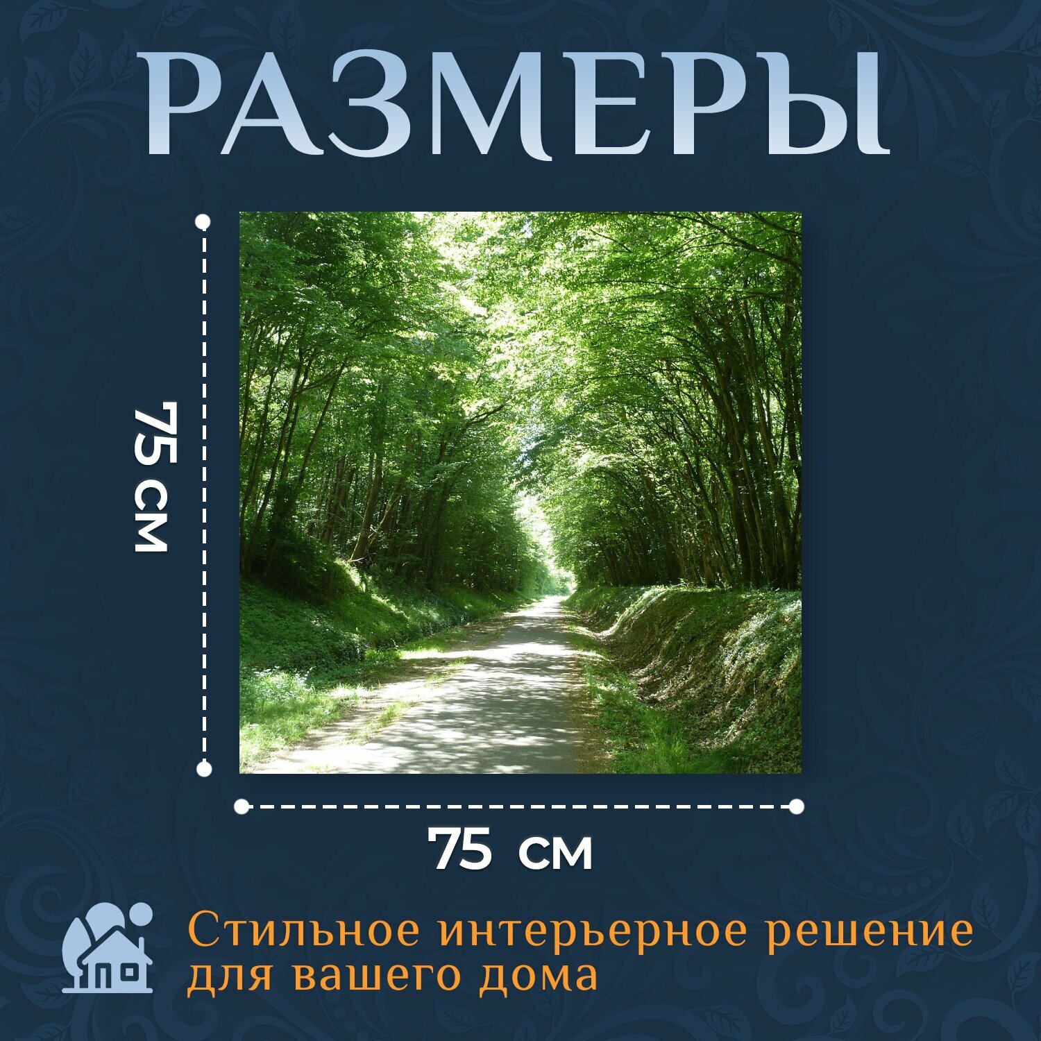 Картина на холсте "Деревья на дороге, дорожка, пятнистый свет" на подрамнике 75х75 см. для интерьера интересное: