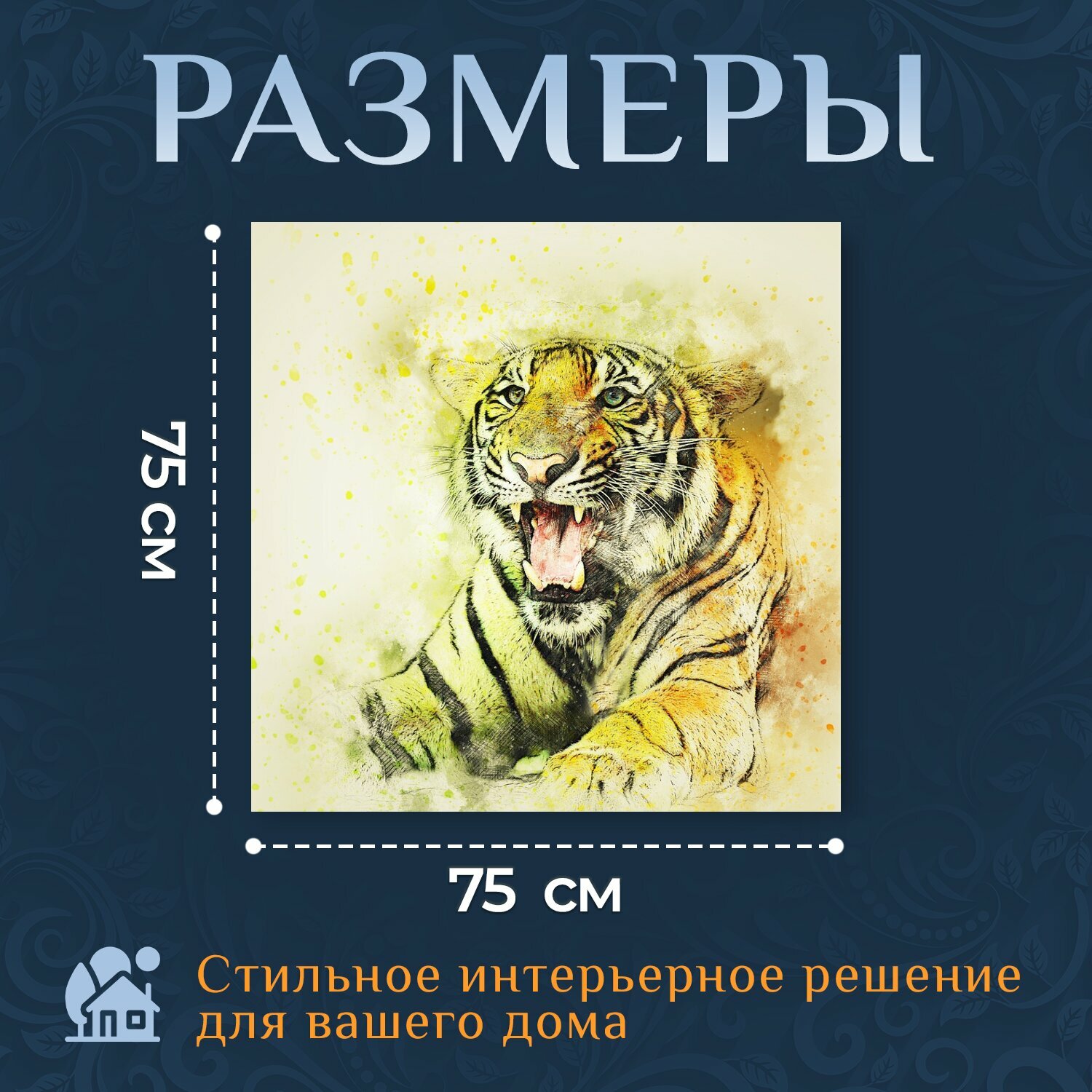 Ниже Вы можете прочитать отзывы на Картина на холсте "Тигр, животное, изобразительное искусство" на подрамнике 75х75 см. для интерьера, ознакомится с подробными характеристиками, посмотреть интересные обзоры и фотографии на Картина на холсте "Тигр, животное, изобразительное искусство" на подрамнике 75х75 см. для интерьера.