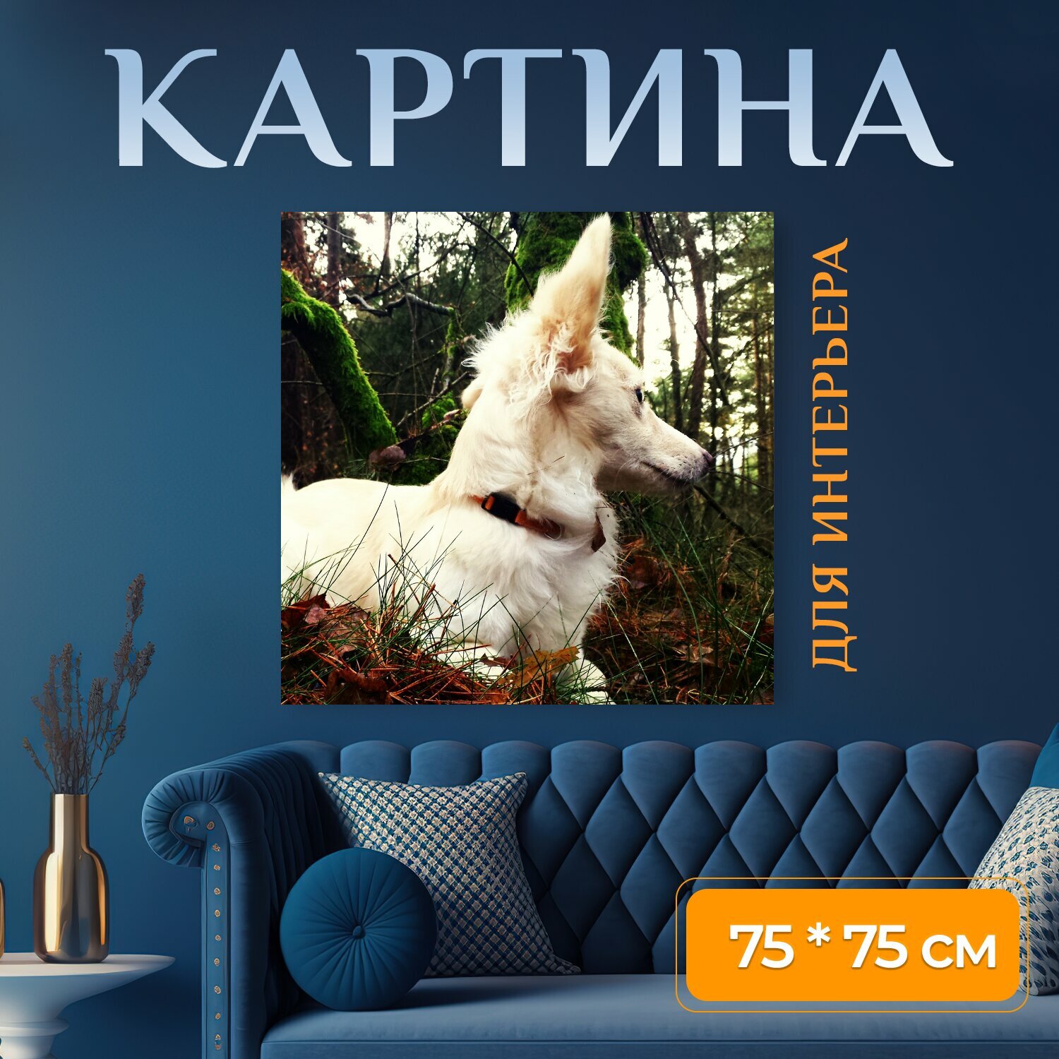 Купить Картина на холсте "Животное, собака, лес" на подрамнике 75х75 см. для интерьера