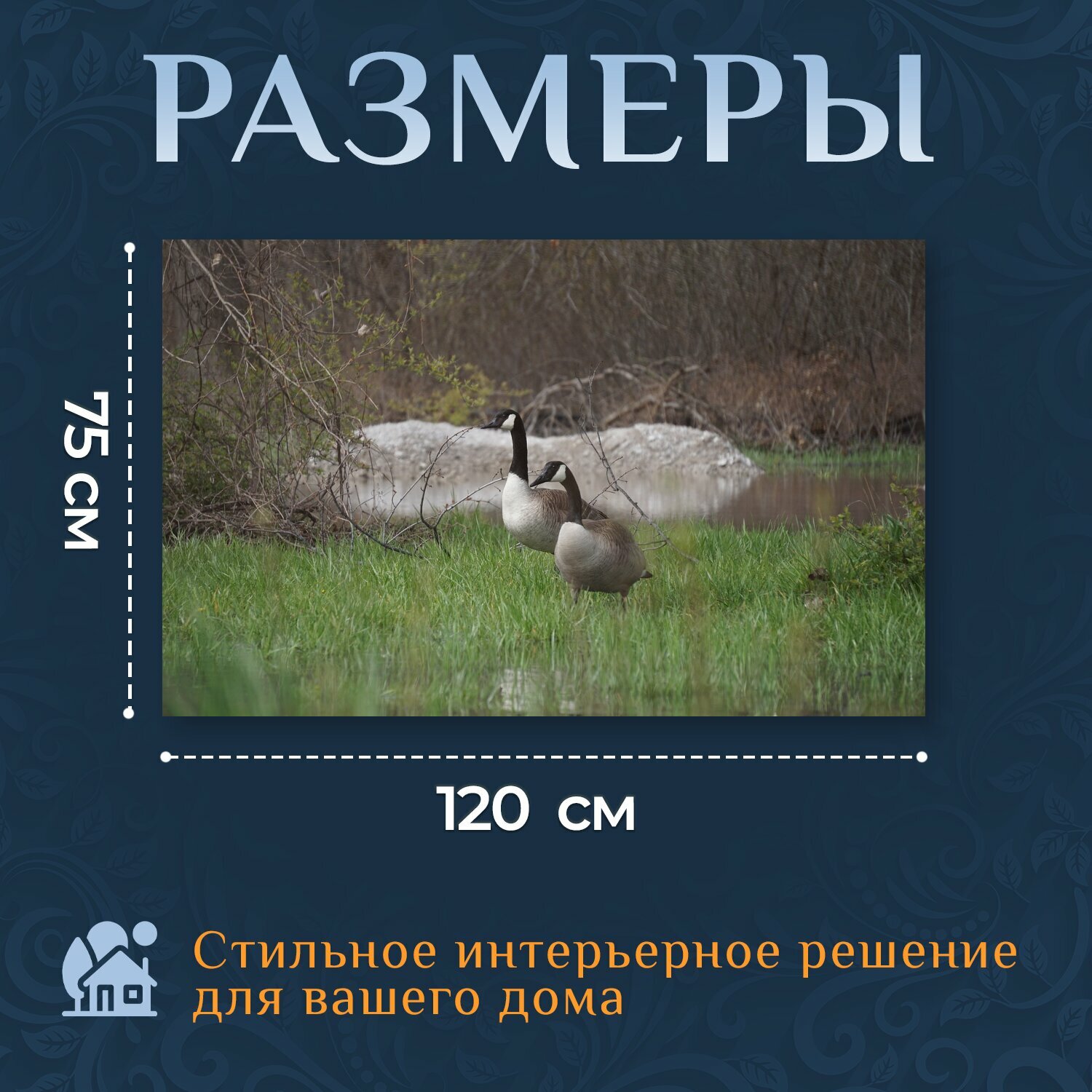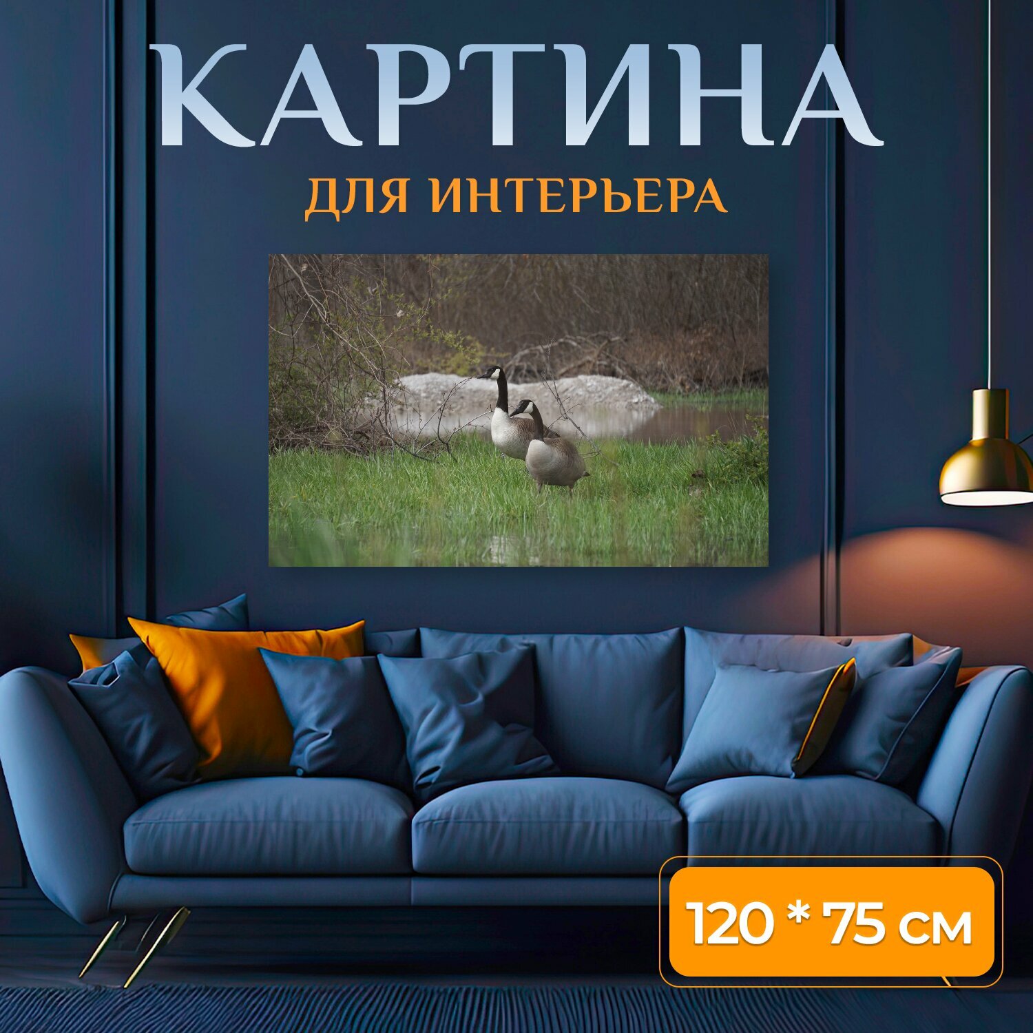 Картина на холсте "Гусь, гуси, канадский" на подрамнике 120х75 см. для интерьера интересное: