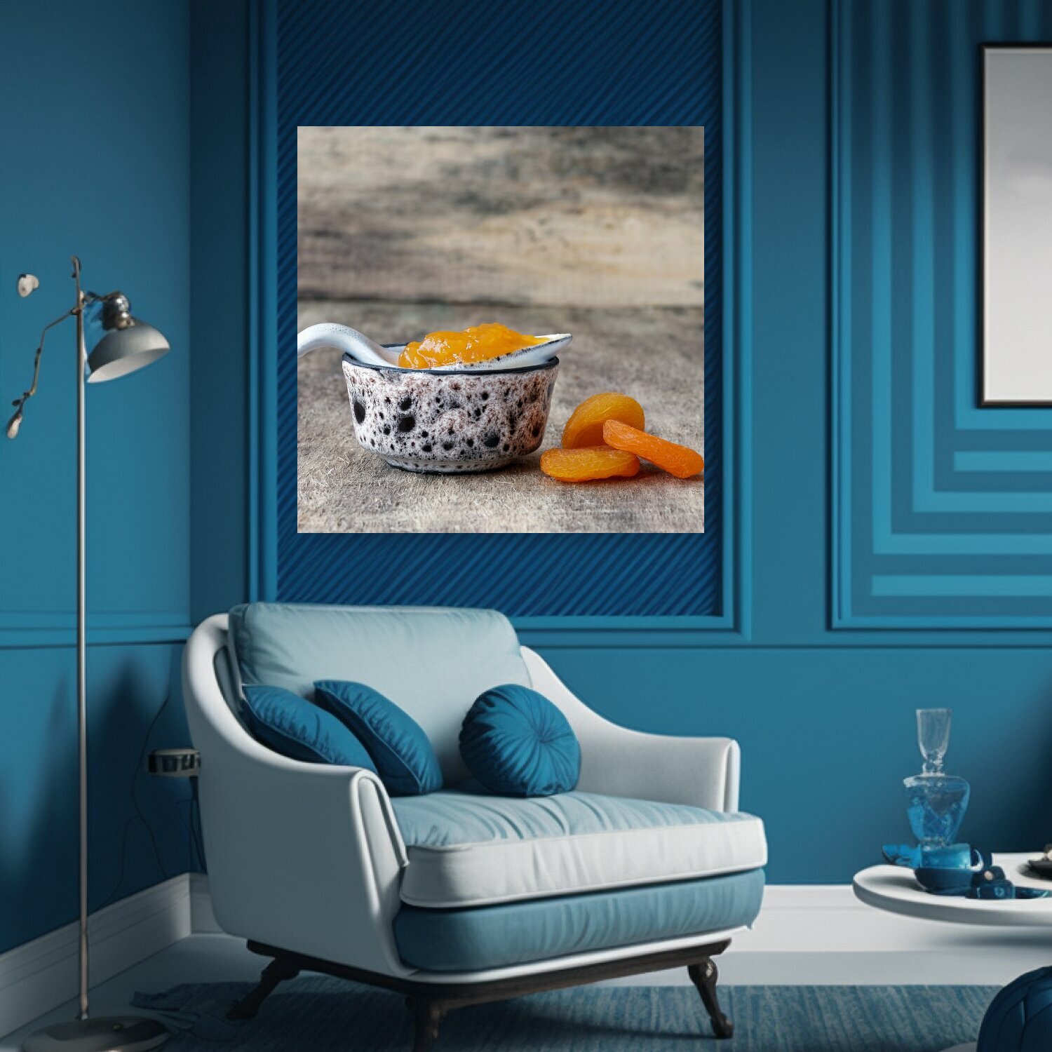 Купить Картина на холсте "Керамическая банка, маленькая баночка, абрикосовый джем" на подрамнике 75х75 см. для интерьера