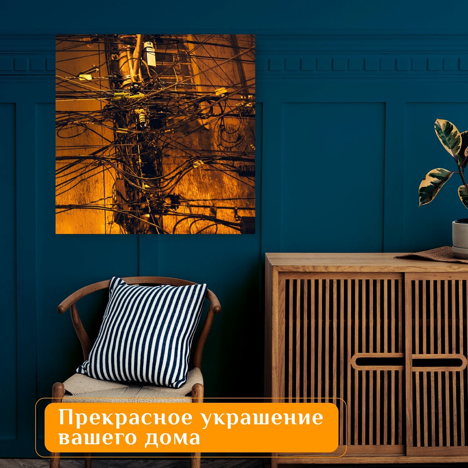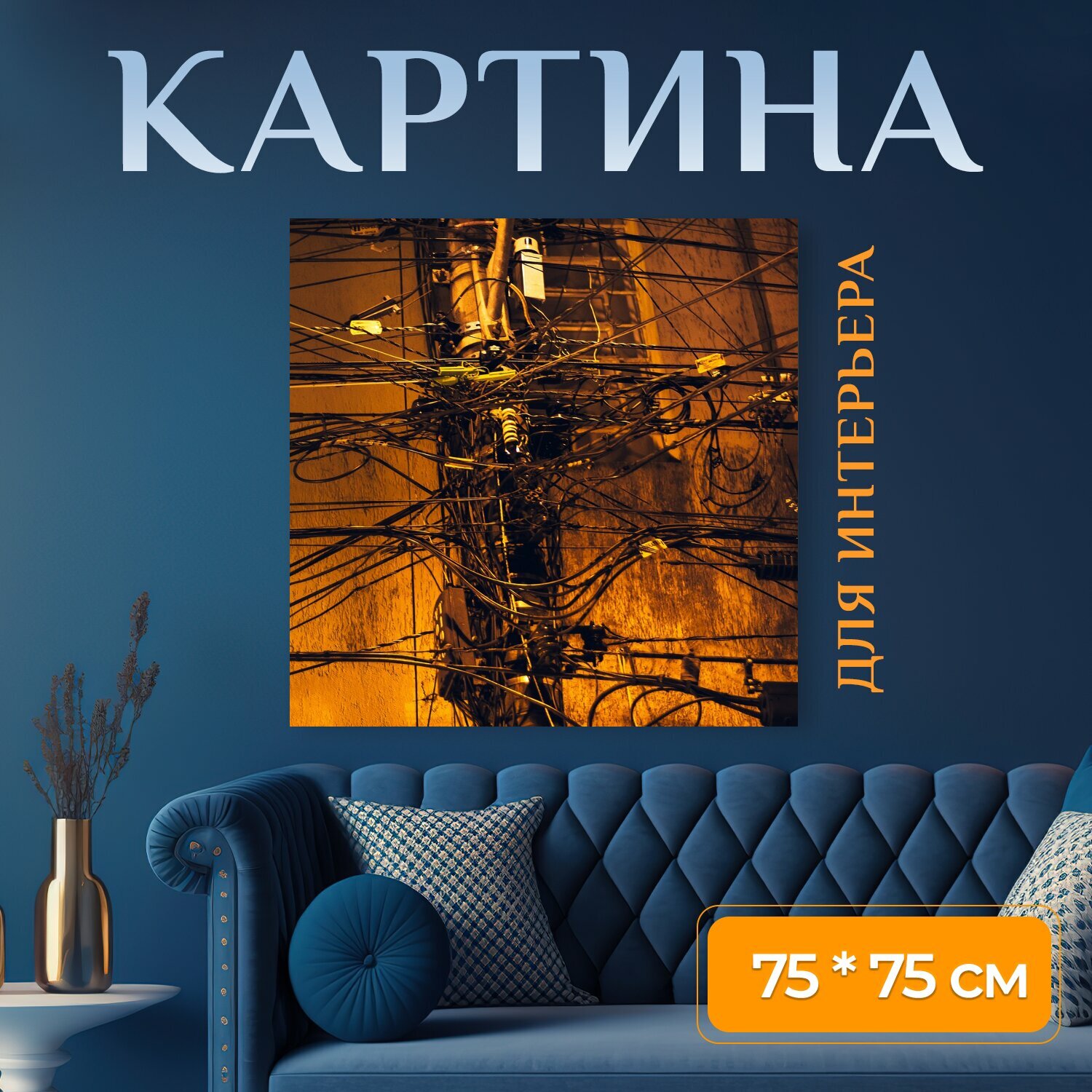 Купить Картина на холсте "Столб, кабель, линия" на подрамнике 75х75 см. для интерьера