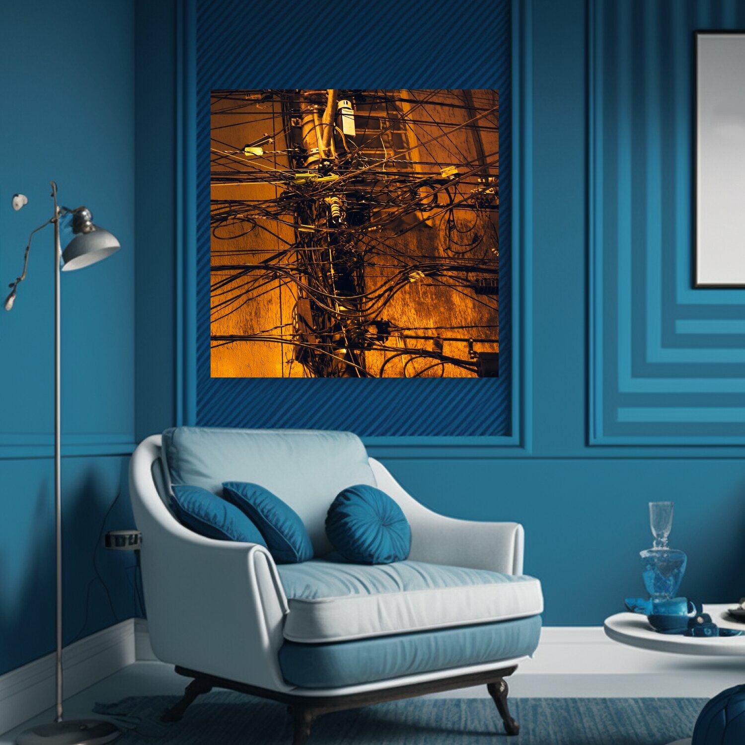 Картина на холсте "Столб, кабель, линия" на подрамнике 75х75 см. для интерьера интересное: