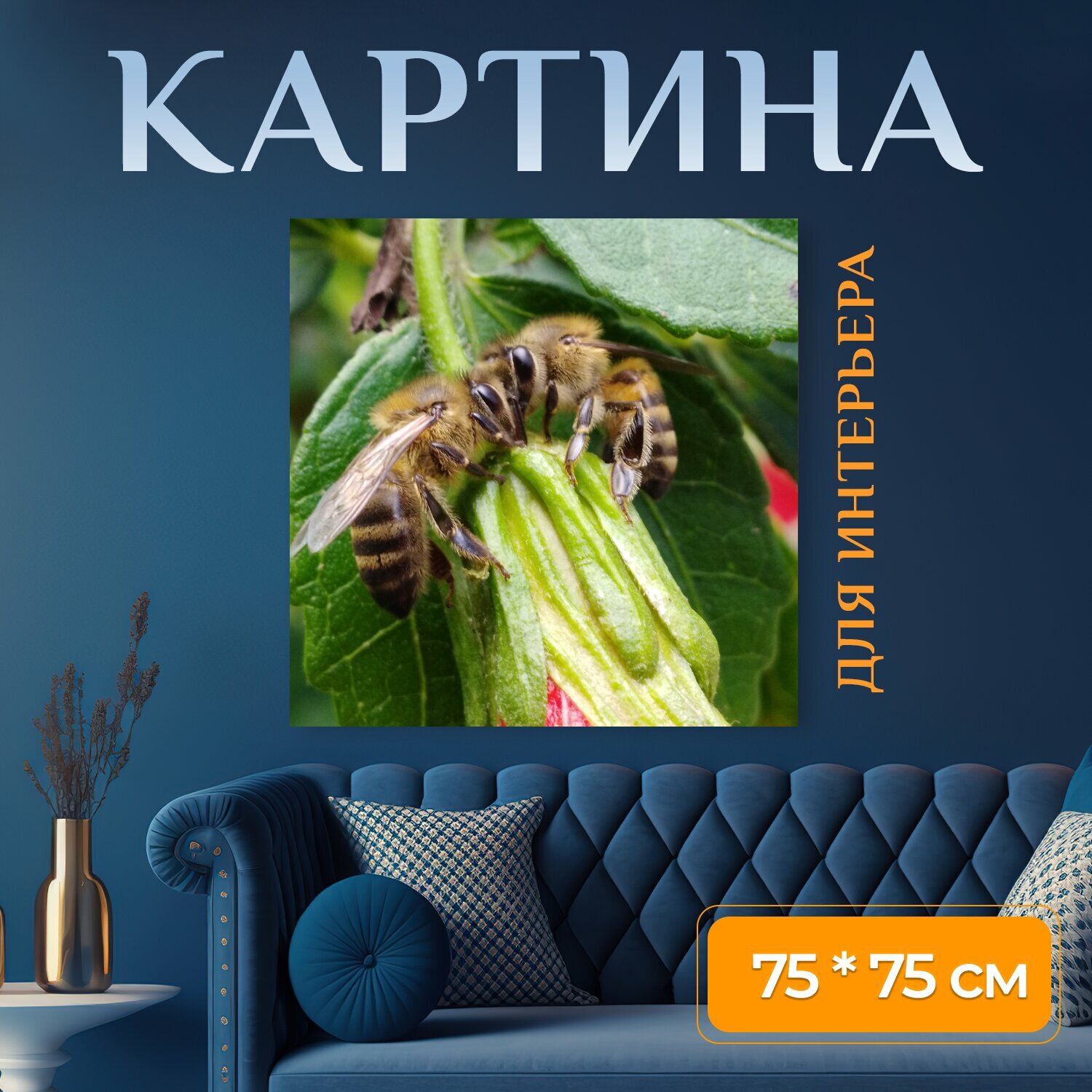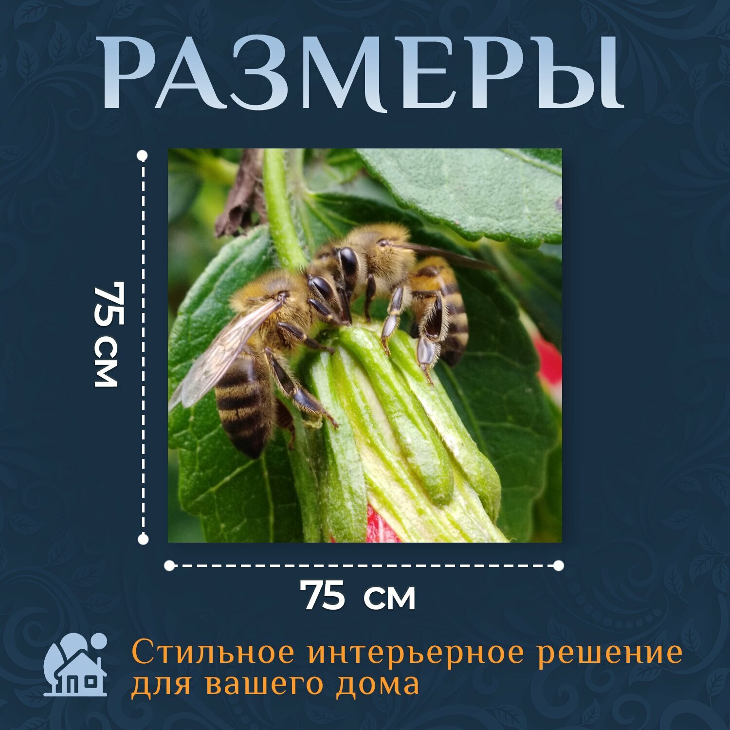 Картина на холсте "Пчелы, цветы, цветочная пыльца" на подрамнике 75х75 см. для интерьера интересное: